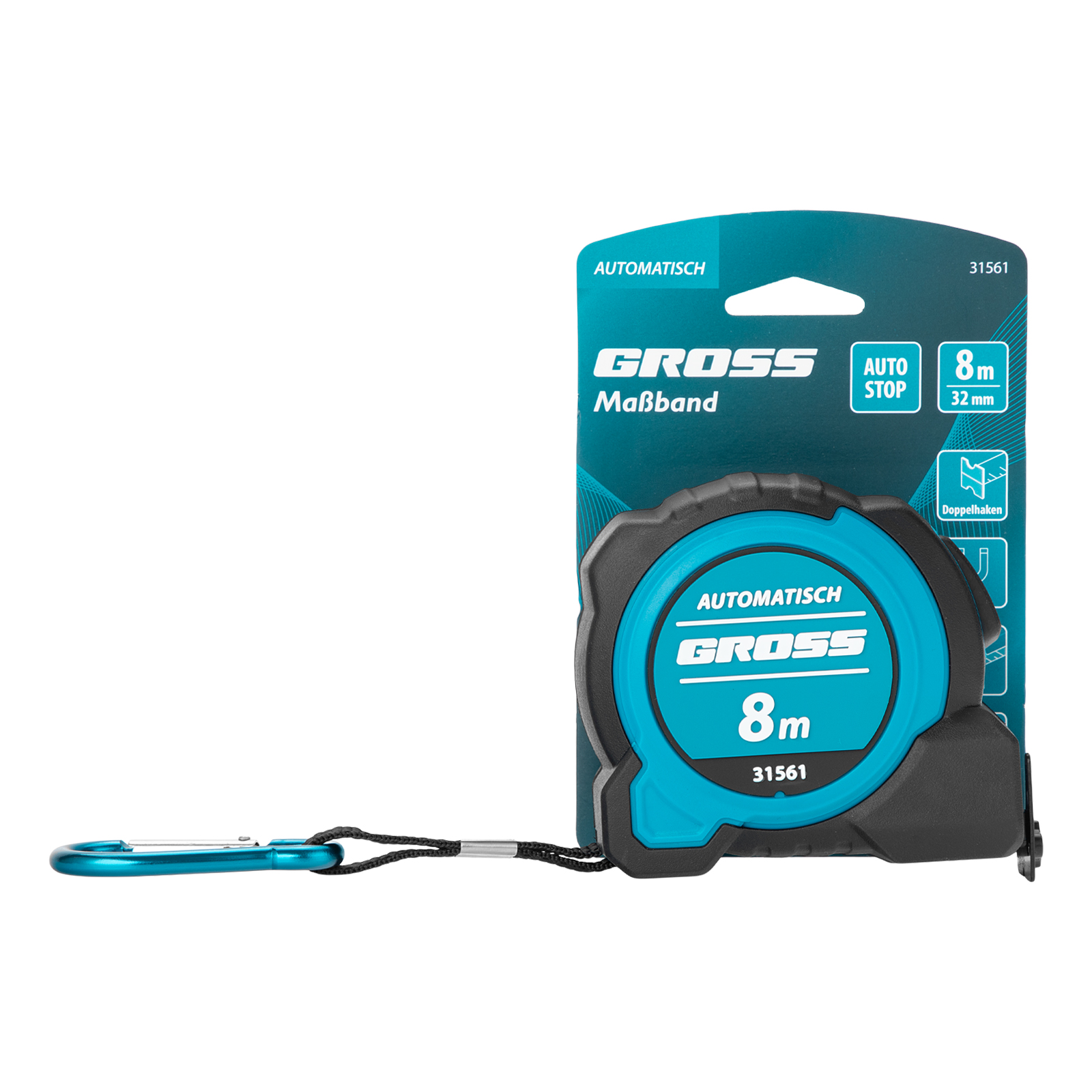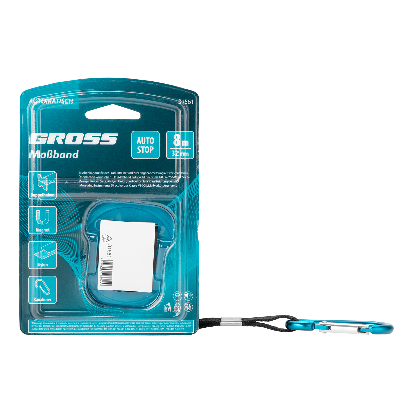 Рулетка "Automatisch", 8 м х 32 мм, нейлон, магнит, двустор. разметка, антиизлом, автоcтоп Gross