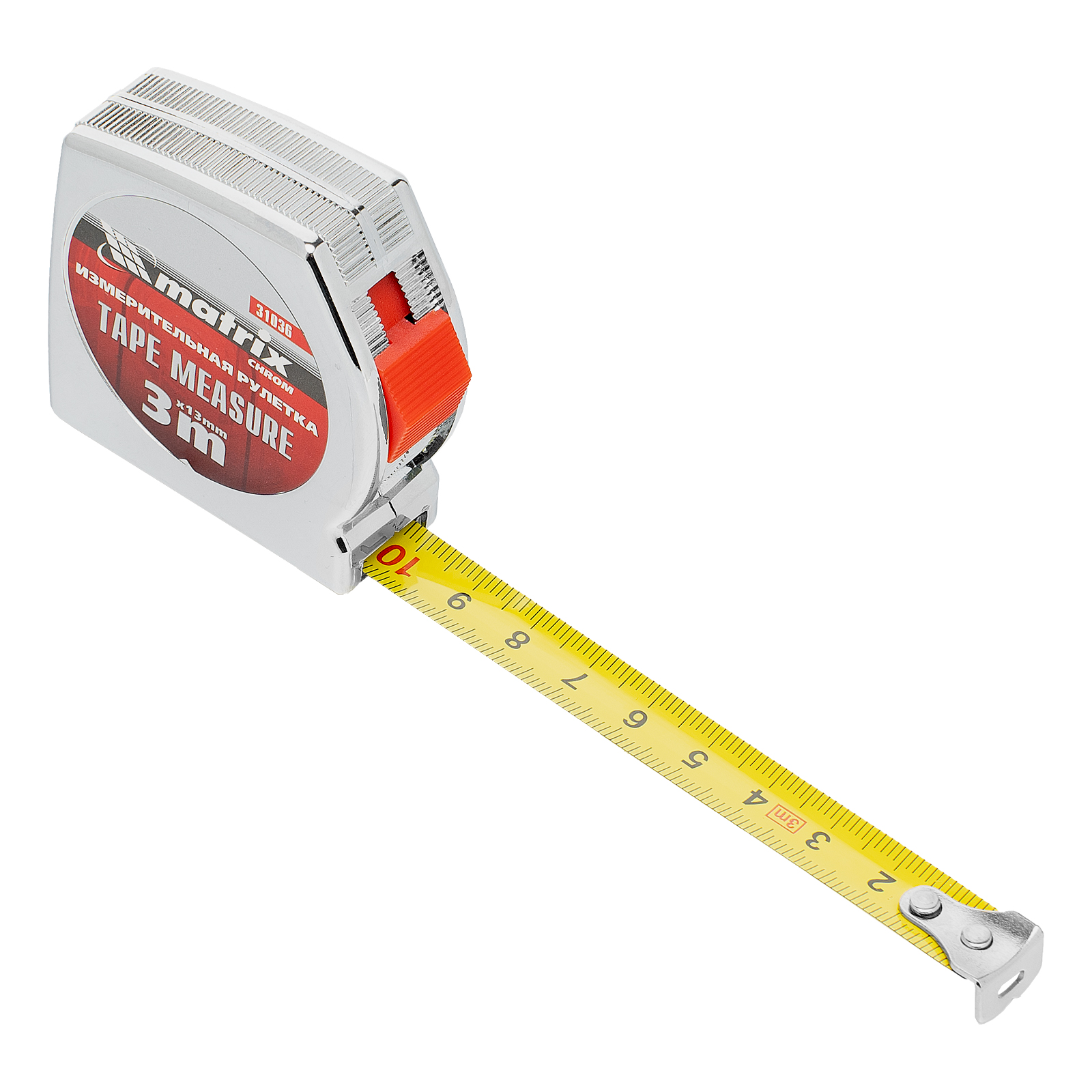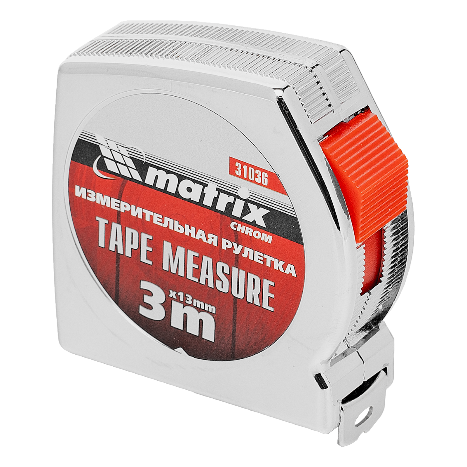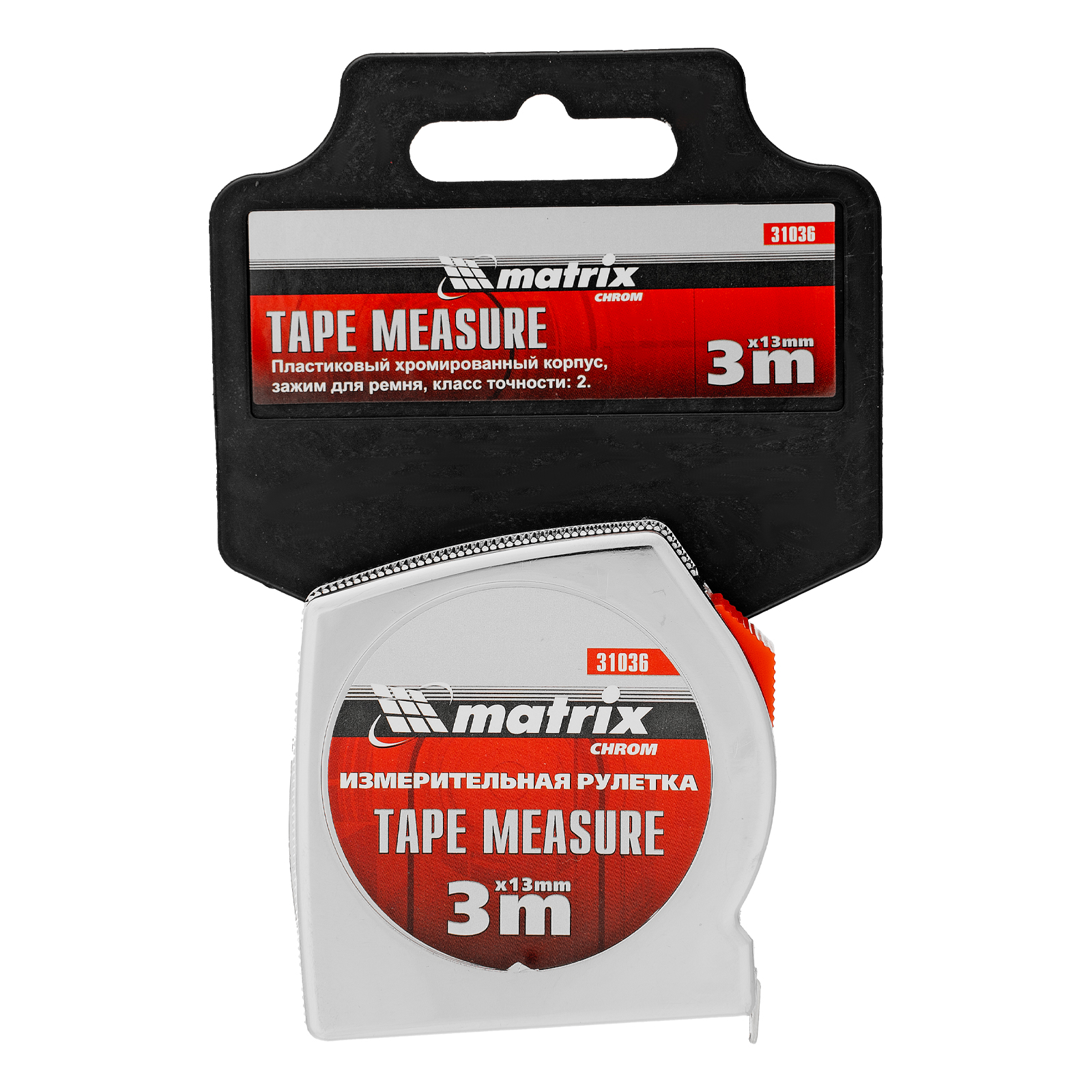 Рулетка Matrix Chrom 31036 с лентой длиной 3 м и шириной 13 мм, в хромированном корпусе, используется для измерения предметов и расстояний. Имеет класс точности 2 и цену деления 1 мм. Корпус выполнен из ударопрочного ABS-пластика и хромирован, что снижает риск его повреждения при случайном падении или ударе. Рулетка пригодится во время проведения ремонтных и отделочных работ, подойдет также для домашнего использования.