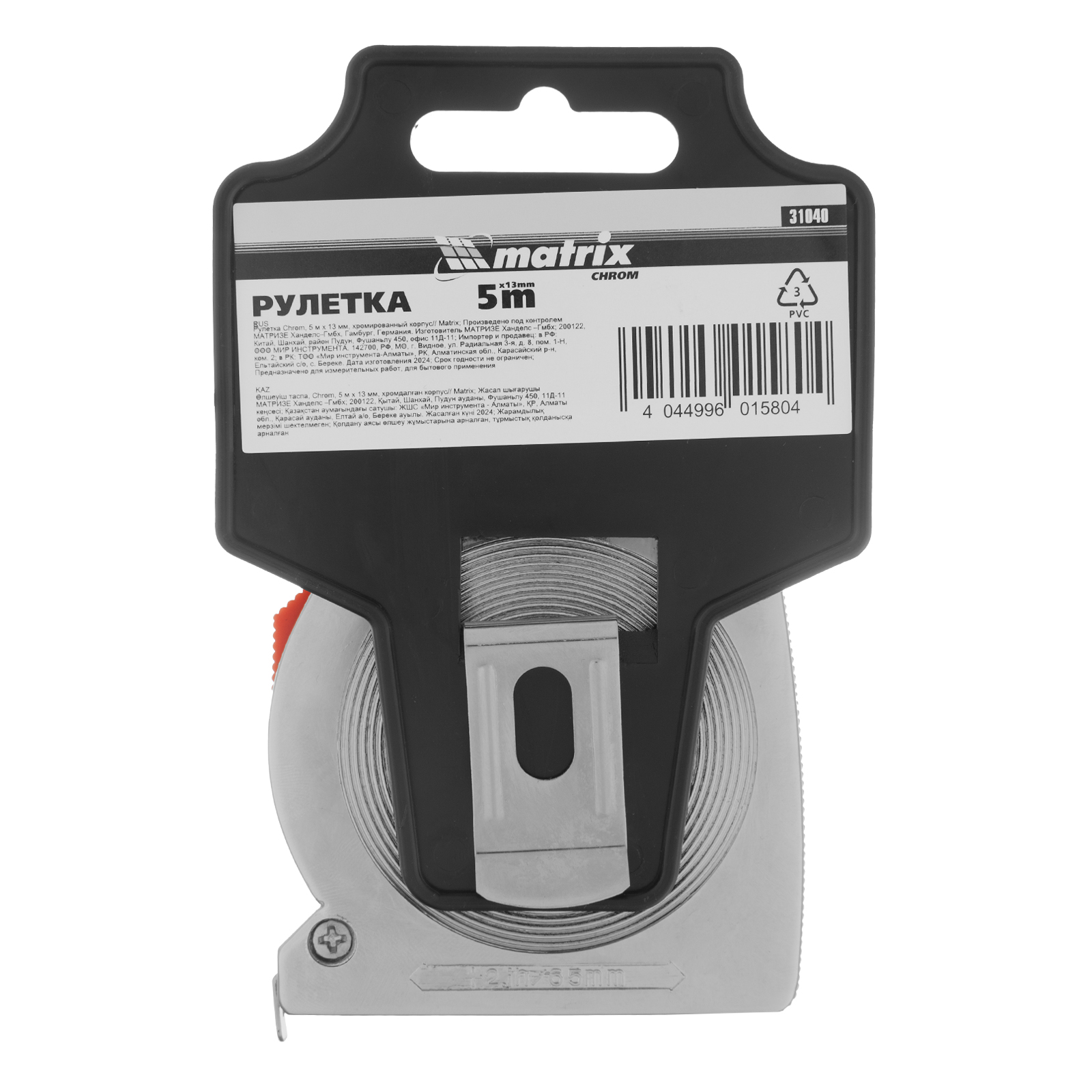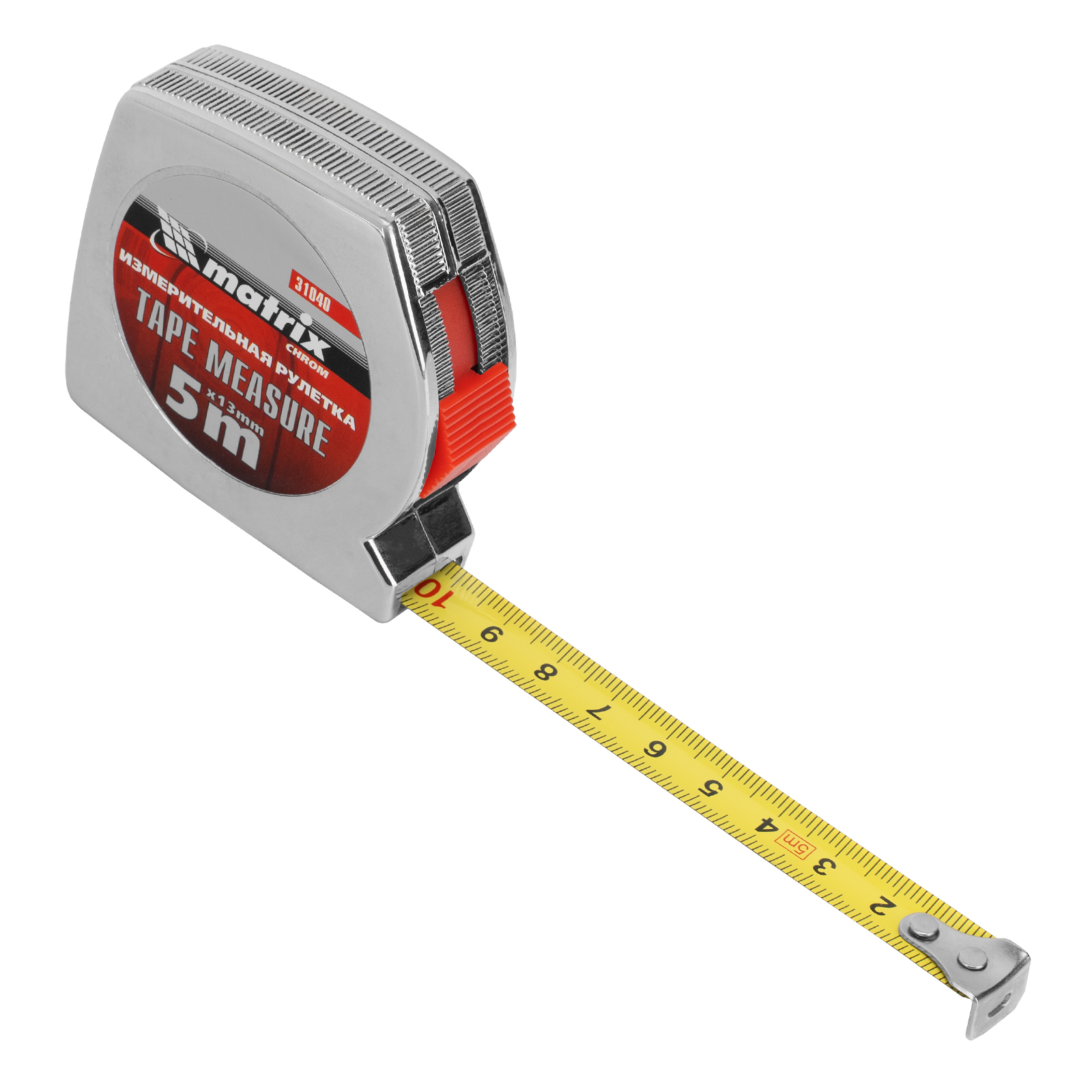 Рулетка Matrix Chrom 31040 с лентой длиной 5 м и шириной 13 мм, в хромированном корпусе, используется для измерения предметов и расстояний. Имеет класс точности 2 и цену деления 1 мм. Корпус выполнен из ударопрочного ABS-пластика и хромирован, что снижает риск его повреждения при случайном падении или ударе. Рулетка пригодится во время проведения ремонтных и отделочных работ, подойдет также для домашнего использования.