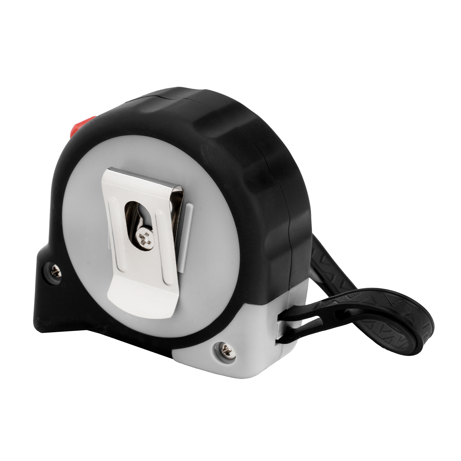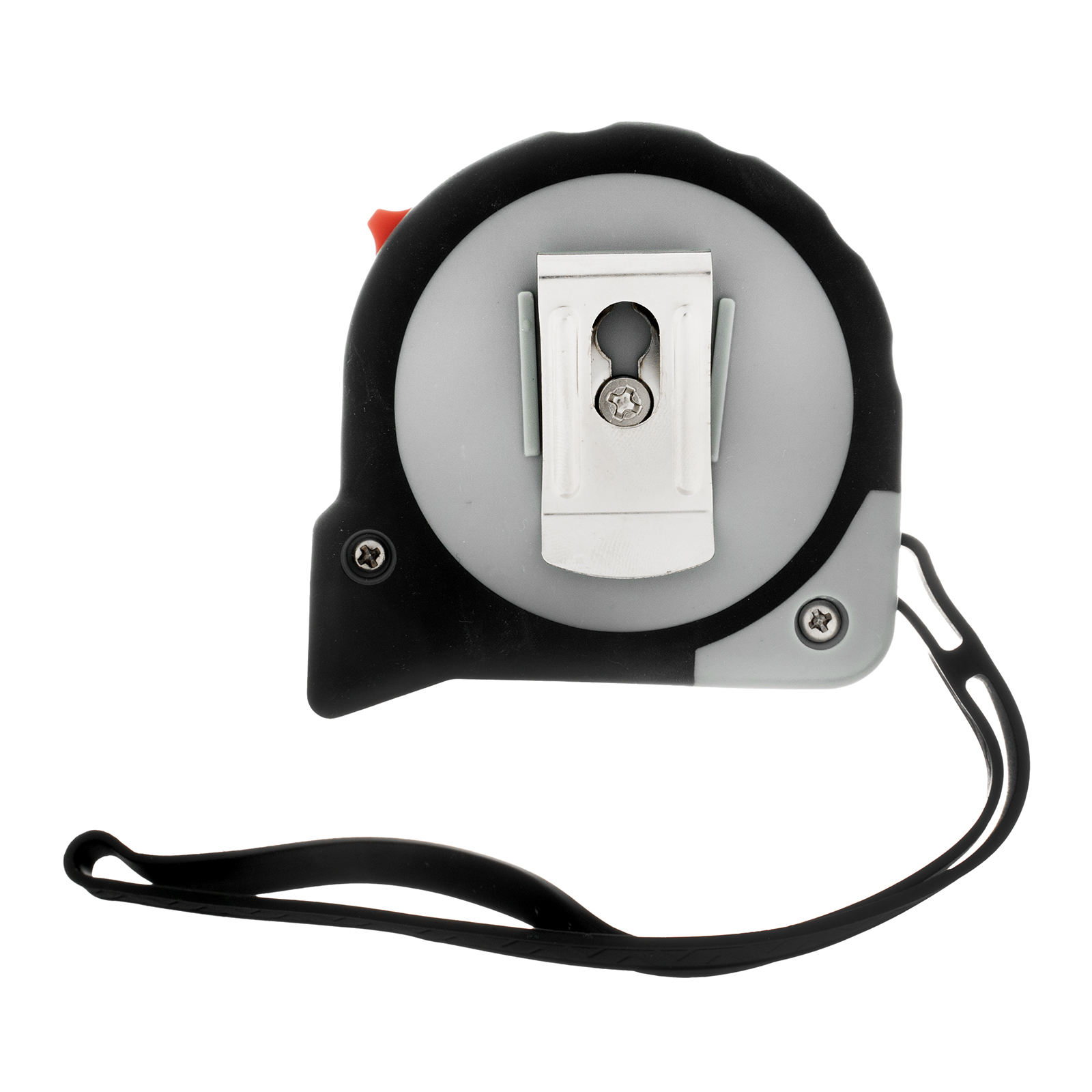 - Дополнительные возможности — специальный ремешок позволяет носить рулетку на запястье, при помощи металлической клипсы-зажима инструмент можно зафиксировать на поясе.