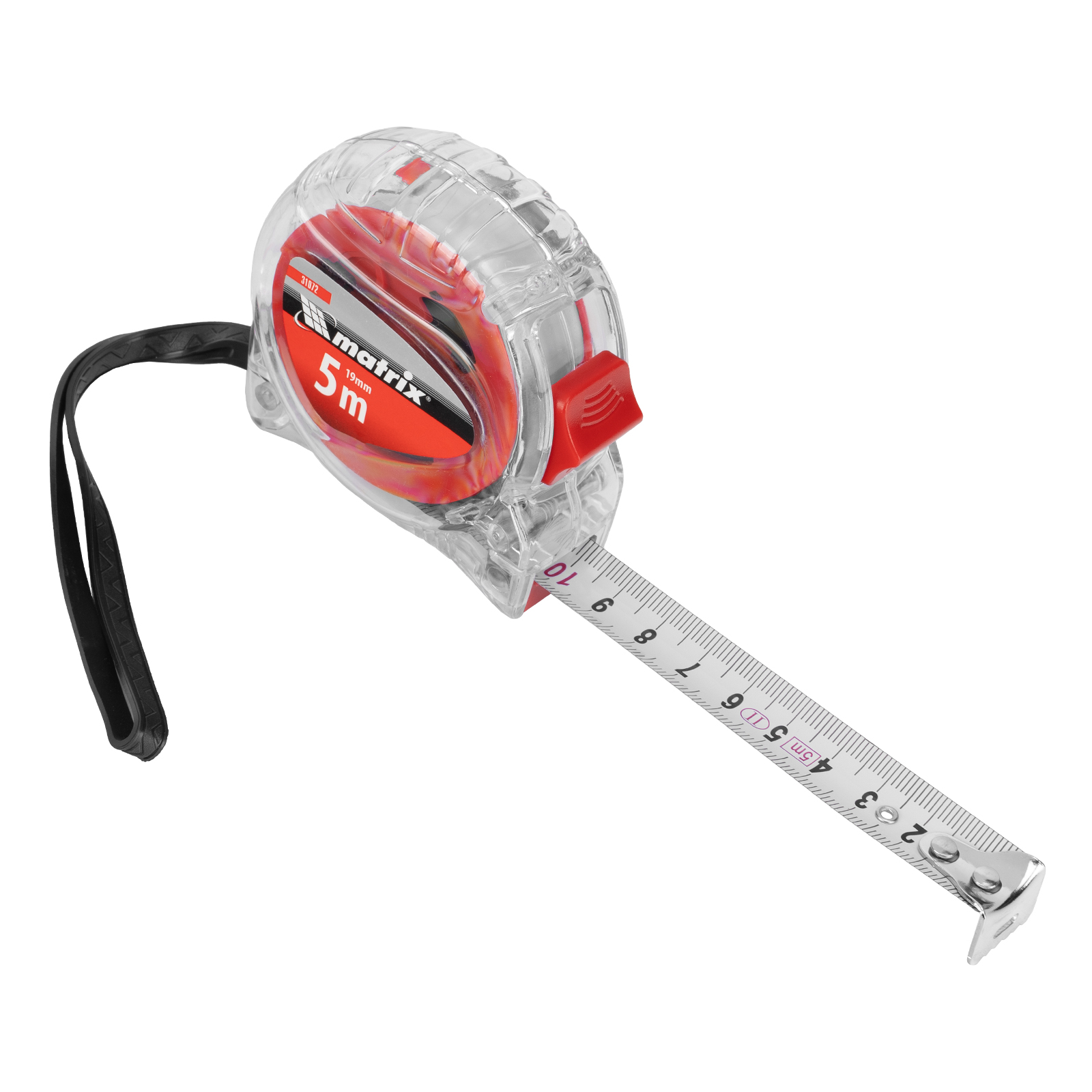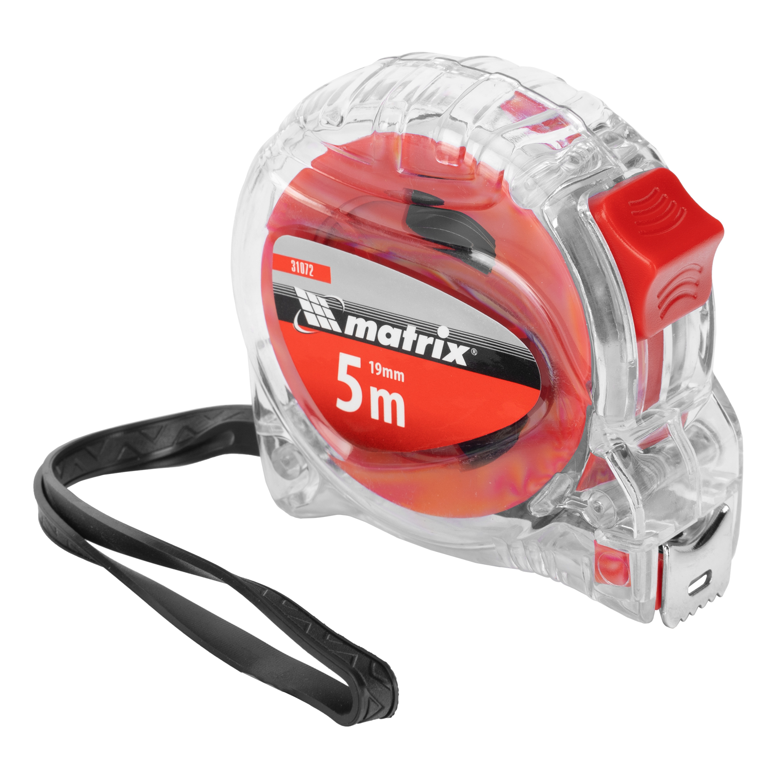 Рулетка Matrix Crystal 31072 с лентой длиной 5 м и шириной 19 мм, в корпусе из поликарбоната, — измерительный инструмент, использующийся как в профессиональной сфере, так и в быту. Отличительной особенностью модели является корпус из высокопрочного поликарбоната, характеризующийся повышенной устойчивостью к механическим повреждениям.