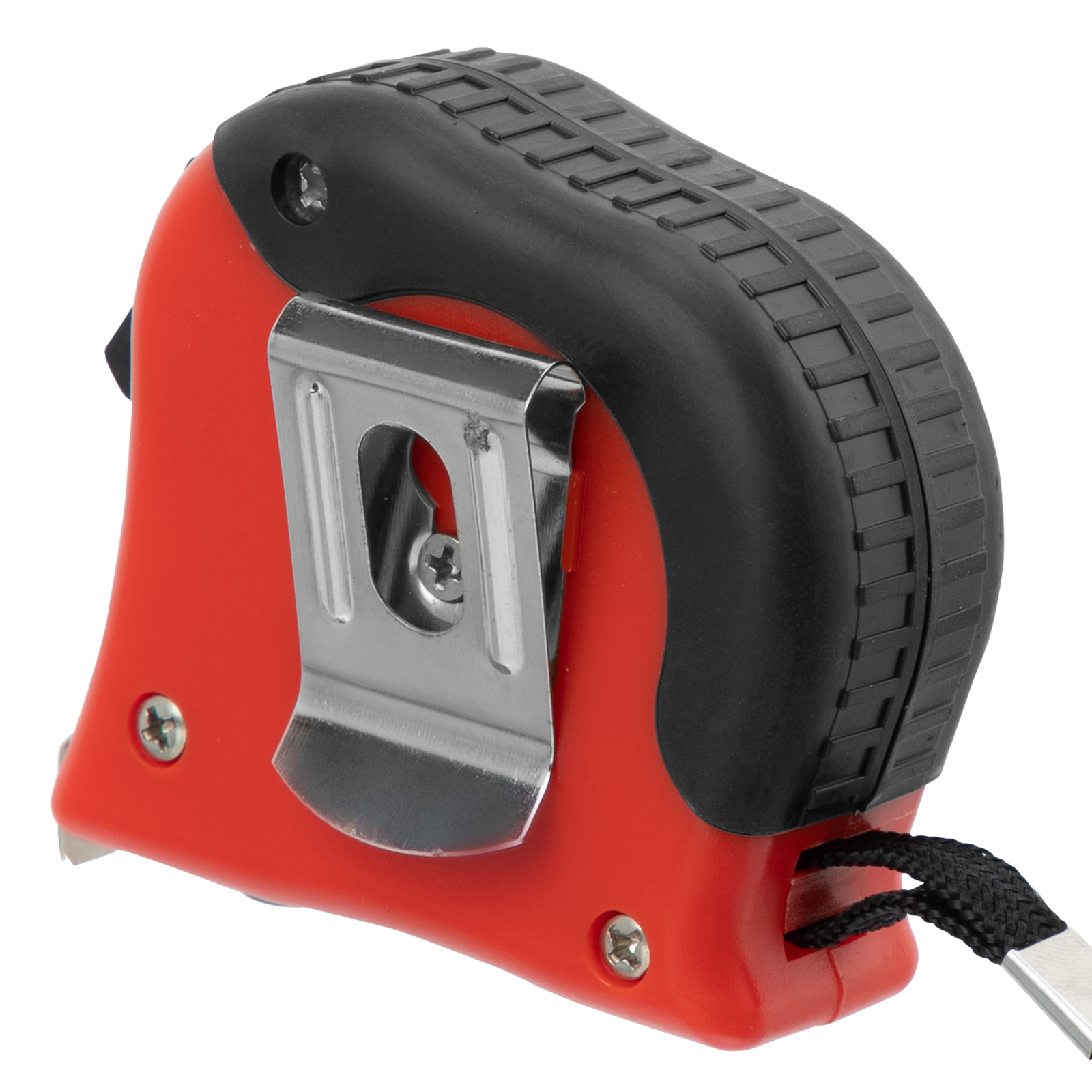 - Комфортное использование — нейлоновый ремешок позволяет носить рулетку на запястье, при помощи металлической скобы можно закрепить рулетку на поясе.
