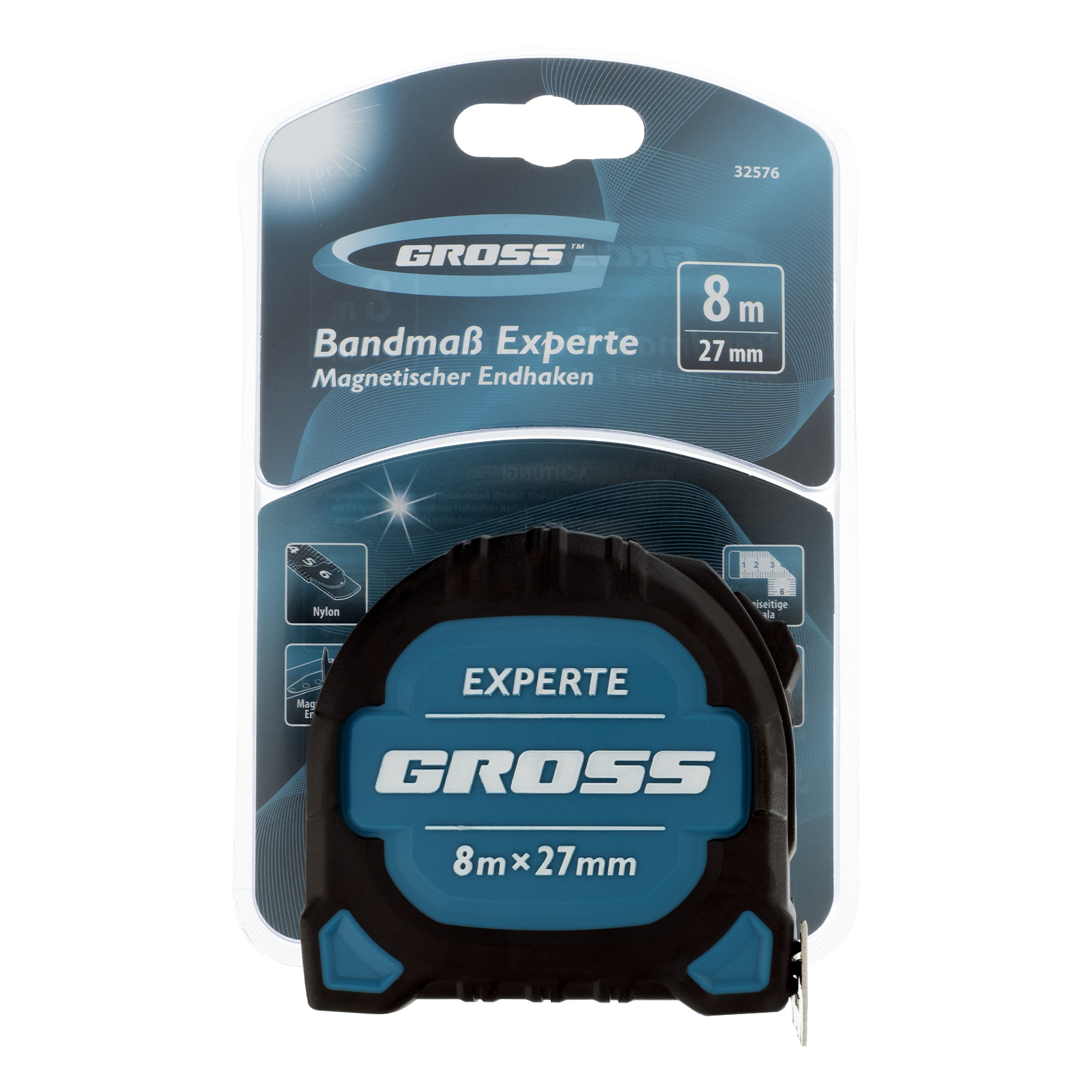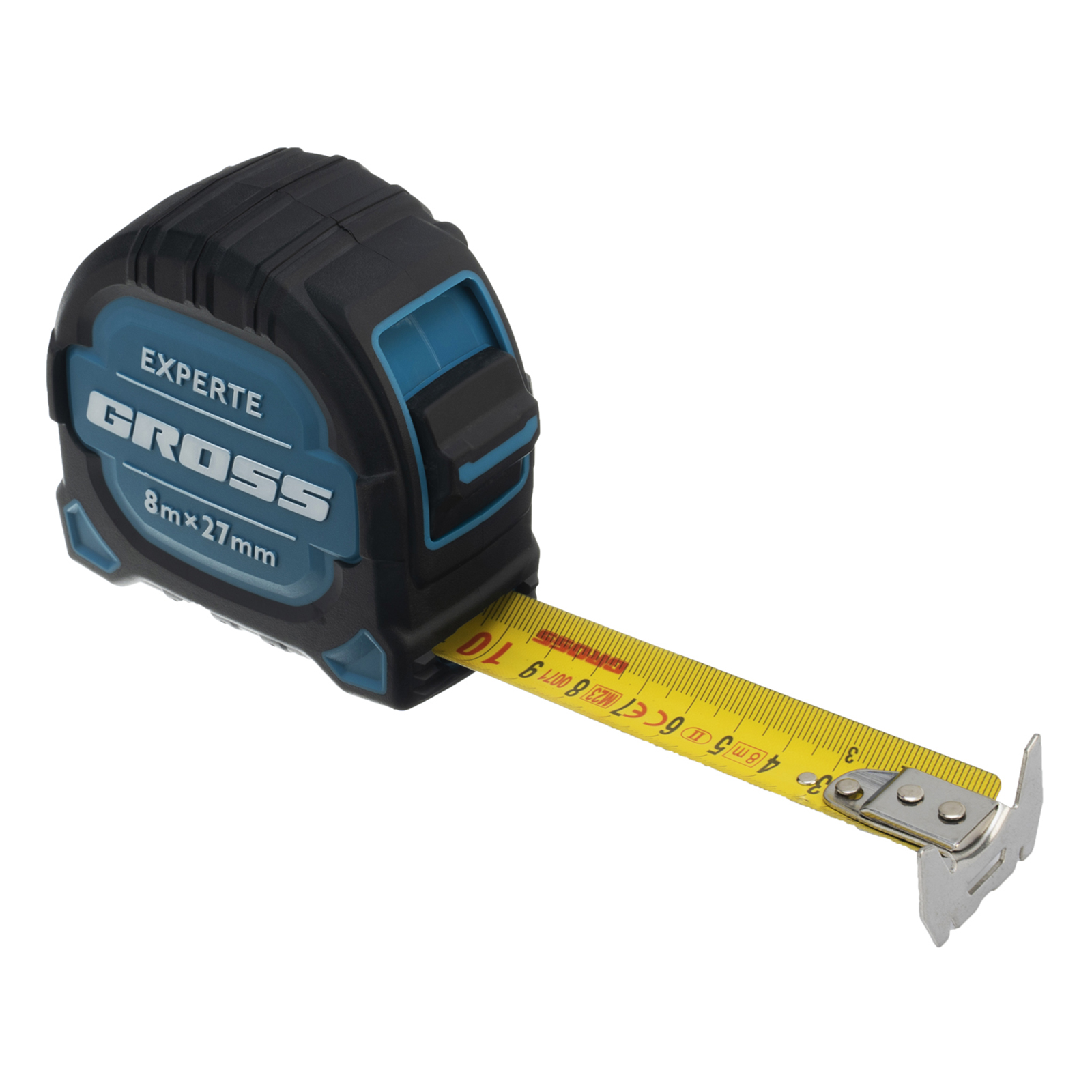 Рулетка Gross «Experte» 32576 с полотном 8 м х 27 мм, в двухкомпонентном корпусе, с двухсторонней разметкой и нейлоновым покрытием ленты, пригодится во время проведения ремонтных и строительных работ. С ее помощью можно измерять заготовки, материалы, конструкции и т.д. Благодаря магнитному зацепу рулетка оптимальна для работы с металлическими поверхностями, а широкое упругое полотно удобно для выполнения измерений в труднодоступных местах.