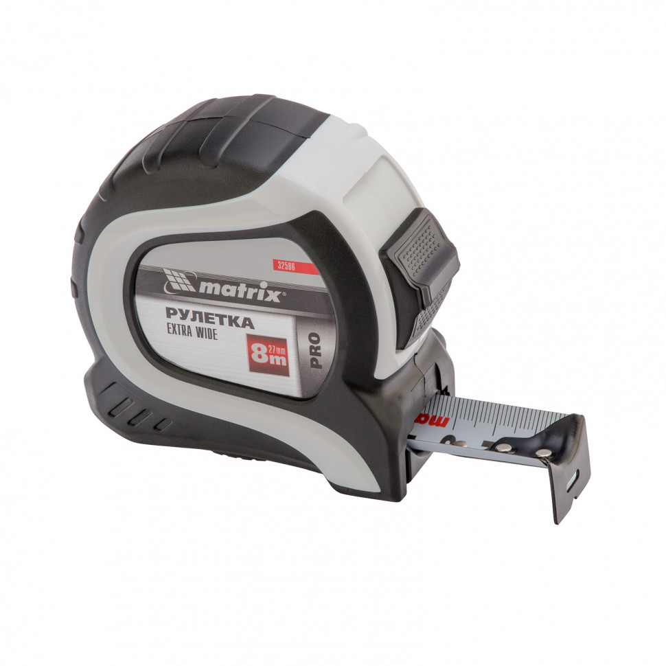 Рулетка Matrix PRO Extra Wide 32586 с лентой длиной 8 м и шириной 27 мм, в двухкомпонентном корпусе, — инструмент для ручного измерения размеров и расстояний. Полотно шириной 27 мм обладает значительной величиной вылета, что упрощает работу в труднодоступных местах. Двухкомпонентный корпус снижает риск поломки в результате случайного падения или удара. Рулетка будет полезна на строительной площадке или во время ремонта, а также пригодится дома или на даче.