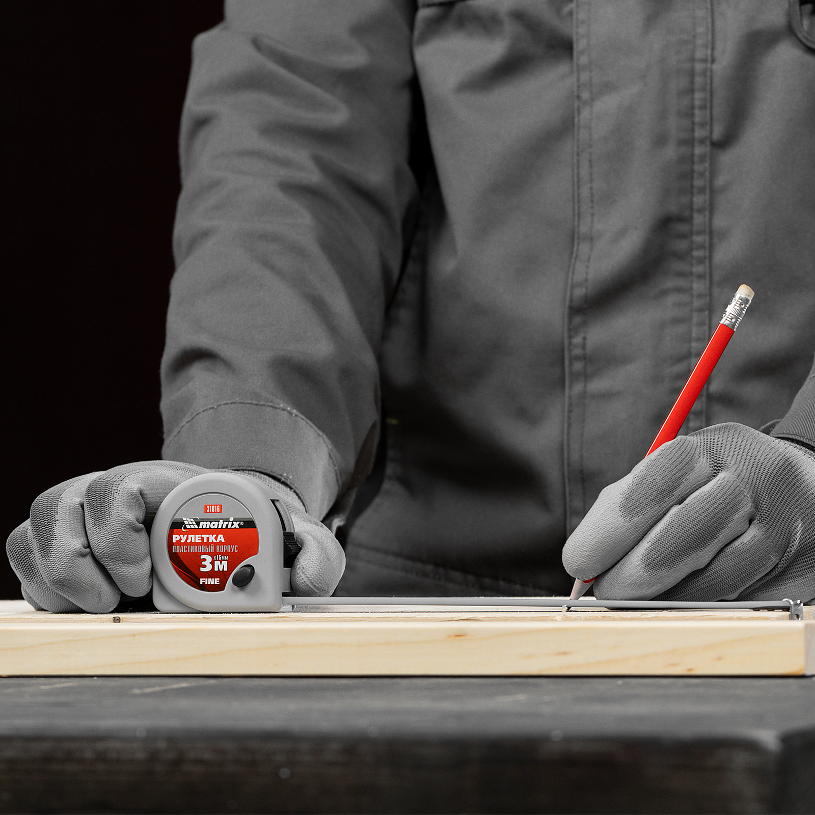 Рулетка Matrix Fine 31016 с лентой длиной 3 м и шириной 16 мм, в пластиковом корпусе, используется для замера расстояний и определения размеров различных объектов. Имеет наиболее распространенный класс точности 2, цена деления составляет 1 мм. Стопор и кнопка-пауза для фиксации ленты облегчают проведение измерений. Инструмент применяется как во время строительных работ, так и в быту.