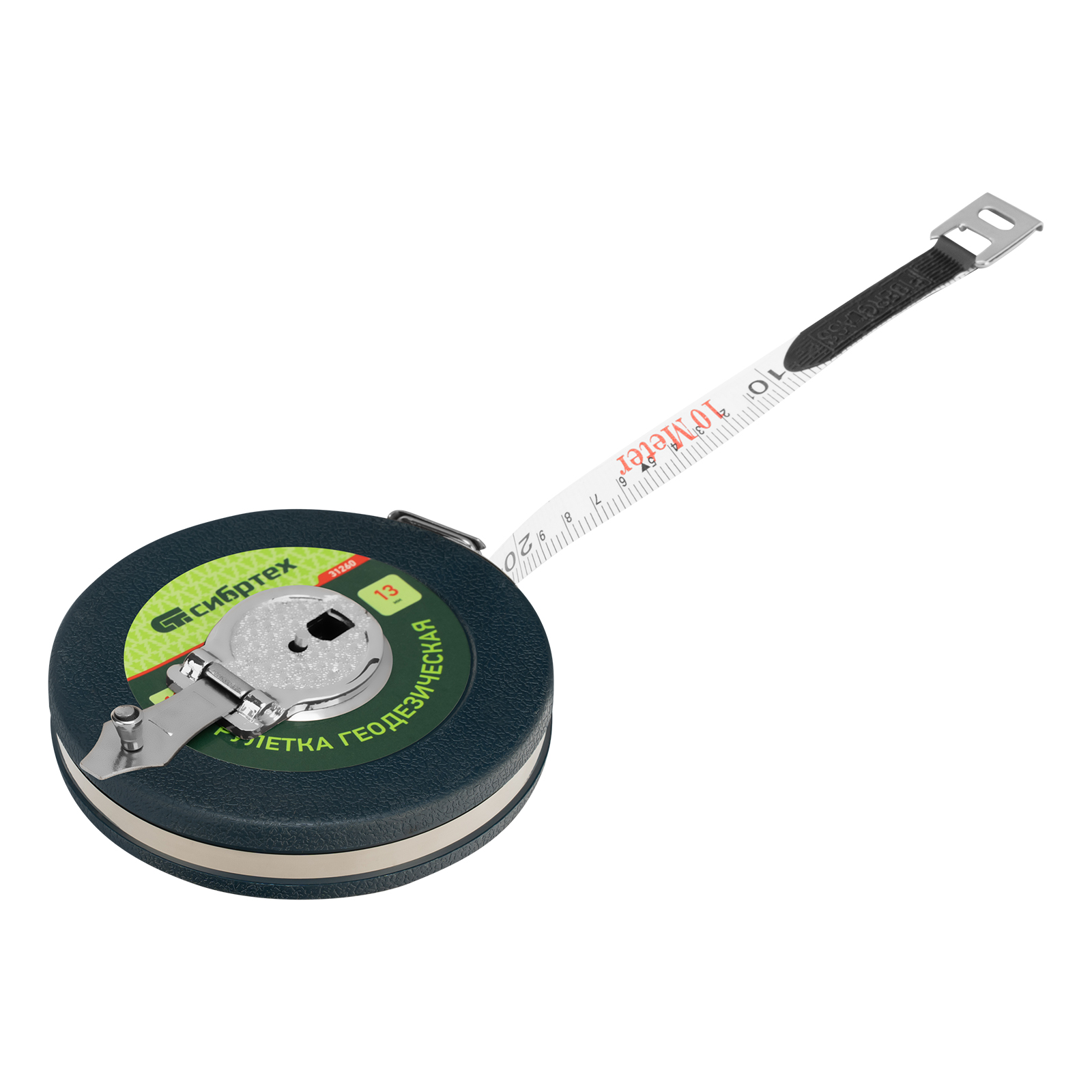 Геодезическая рулетка Сибртех 31260 с измерительным полотном длиной 10 м и шириной 13 мм, в закрытом корпусе, с фибергласовой лентой, — измерительный инструмент для определения расстояний и проведения замеров различных объектов. Рулетка пригодится во время выполнения строительных и ремонтных работ, обмеров садовых участков, а также при формировании ландшафтов.