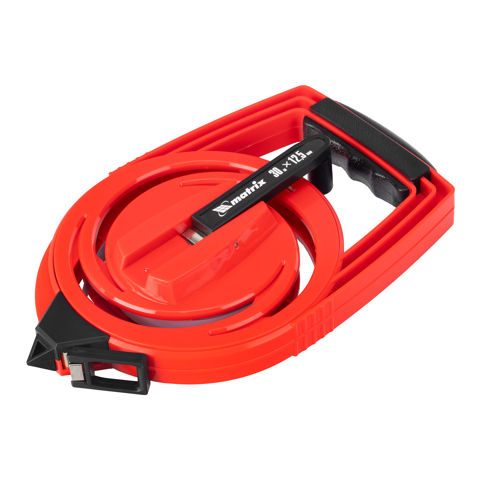 Геодезическая рулетка Matrix 31224 в закрытом корпусе, с металлической лентой размером 30 м х 12,5 мм, применяется для определения расстояний и размеров крупных объектов. Закрытый корпус из ABS-пластика защищает механизм от повреждений. Двухкомпонентная ручка-держатель обеспечивает надежный захват и облегчает работу с рулеткой. Инструмент используется для проведения замеров на открытой местности, дорогах, а также для выполнения ландшафтных работ и картографических обследований.