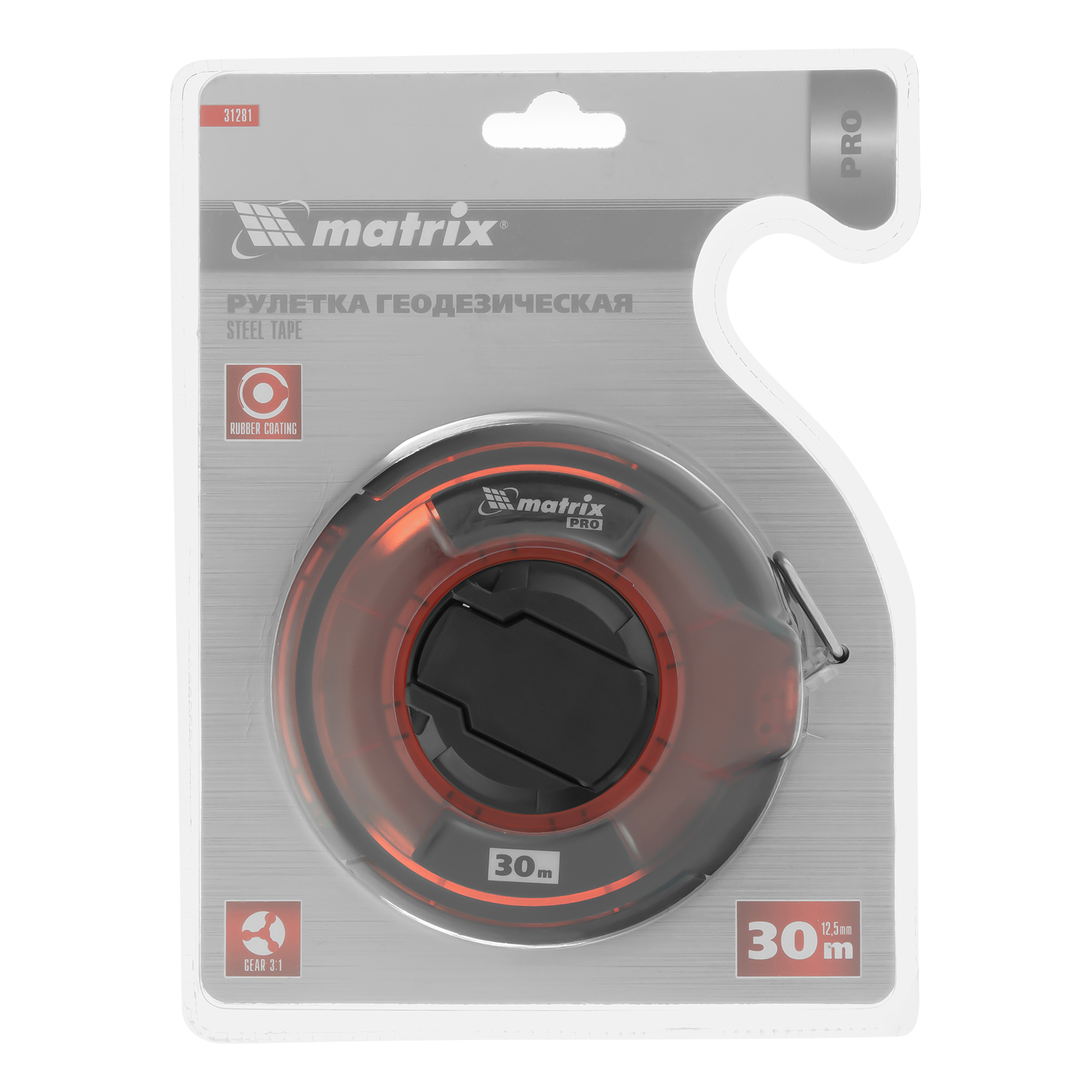 Геодезическая рулетка Matrix PRO 31281 в закрытом корпусе, со стальной лентой длиной 30 м и шириной 12,5 мм, с односторонней шкалой, применяется для проведения замеров на открытых участках. Рулетка оснащена кольцом-зацепом для надежной фиксации измерительной ленты на объекте. Пригодится во время строительных работ, обмеров садовых участков и дорог, обустройства территории.