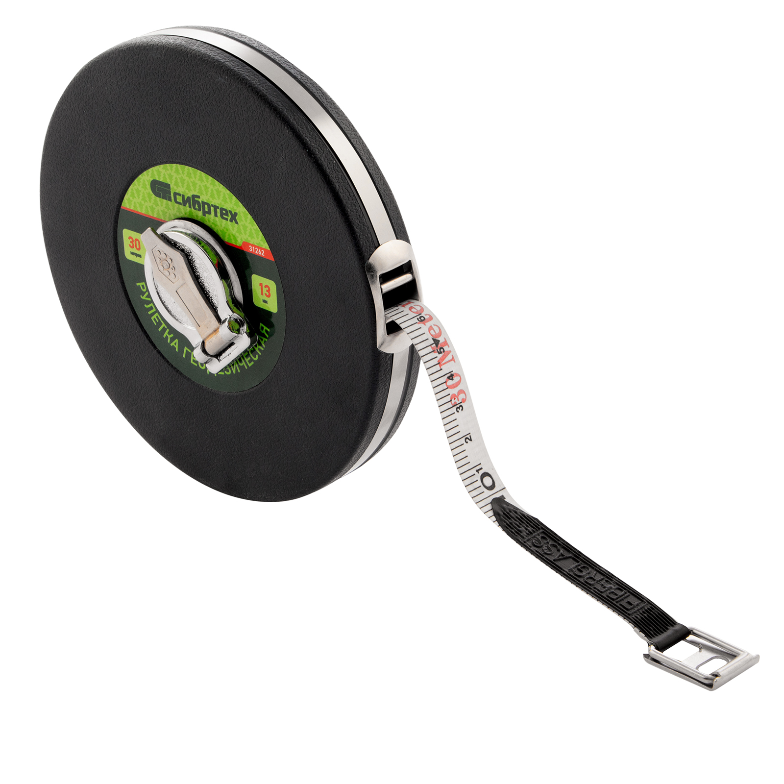 Геодезическая рулетка Сибртех 31262 с измерительным полотном длиной 30 м и шириной 13 мм, в закрытом корпусе, с фибергласовой лентой, — измерительный инструмент для определения расстояний и проведения замеров различных объектов. Рулетка пригодится при выполнении строительных и ремонтных работ, обмеров садовых участков, а также при формировании ландшафтов.