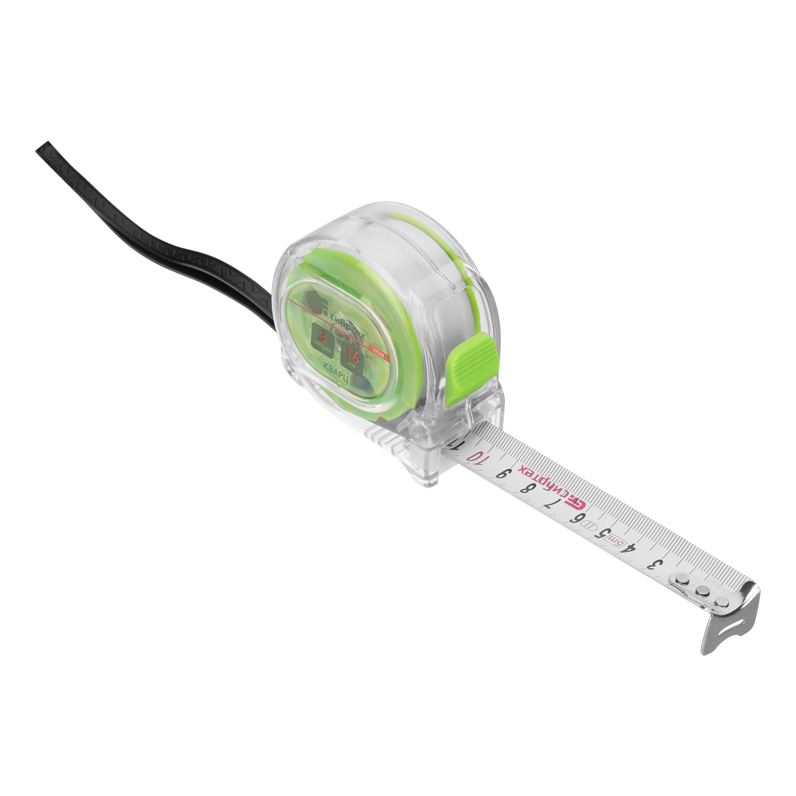 Рулетка Сибртех Кварц 32520 с полотном размером 3 м х 16 мм, в прозрачном корпусе, с амортизатором, будет полезна для измерения длины конструкций, строительных материалов и т.д. Пригодится на строительной площадке, в гараже, мастерской и в быту.