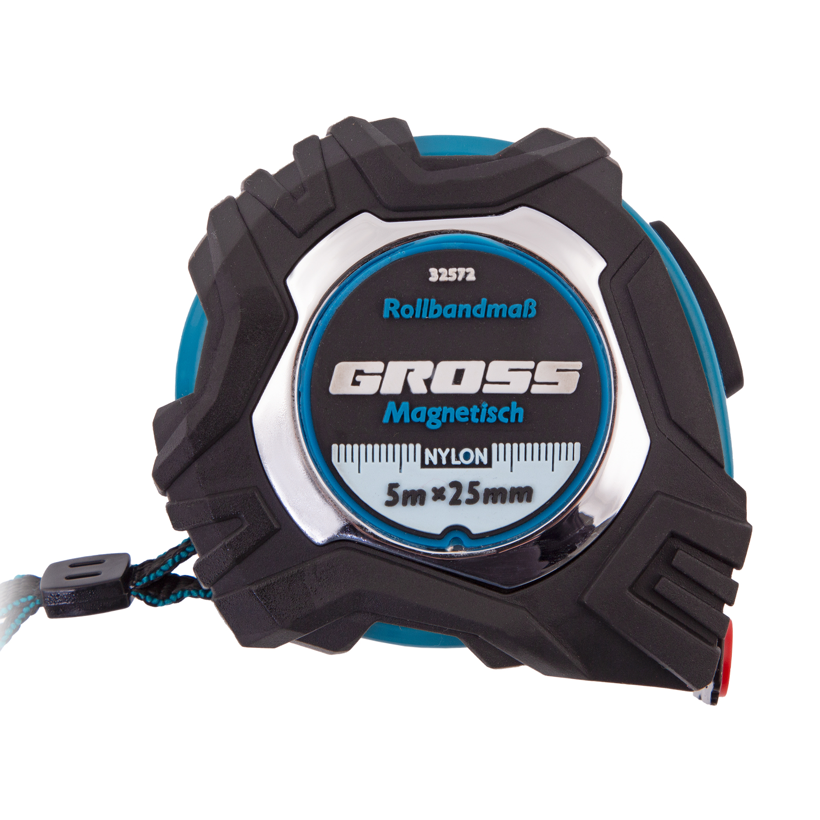 Рулетка «Magnetisch» Gross 32572 в обрезиненном корпусе, с полотном 5 м х 25 мм, магнитным зацепом, нейлоновым покрытием и функцией автоматической фиксации, используется в ходе ремонтных и строительных работ. Оптимально подходит для замера длины стен, полов, различных заготовок, мебели, оконных проемов и т.д. Благодаря магнитному зацепу рулетку удобно использовать при работе с металлическими поверхностями.