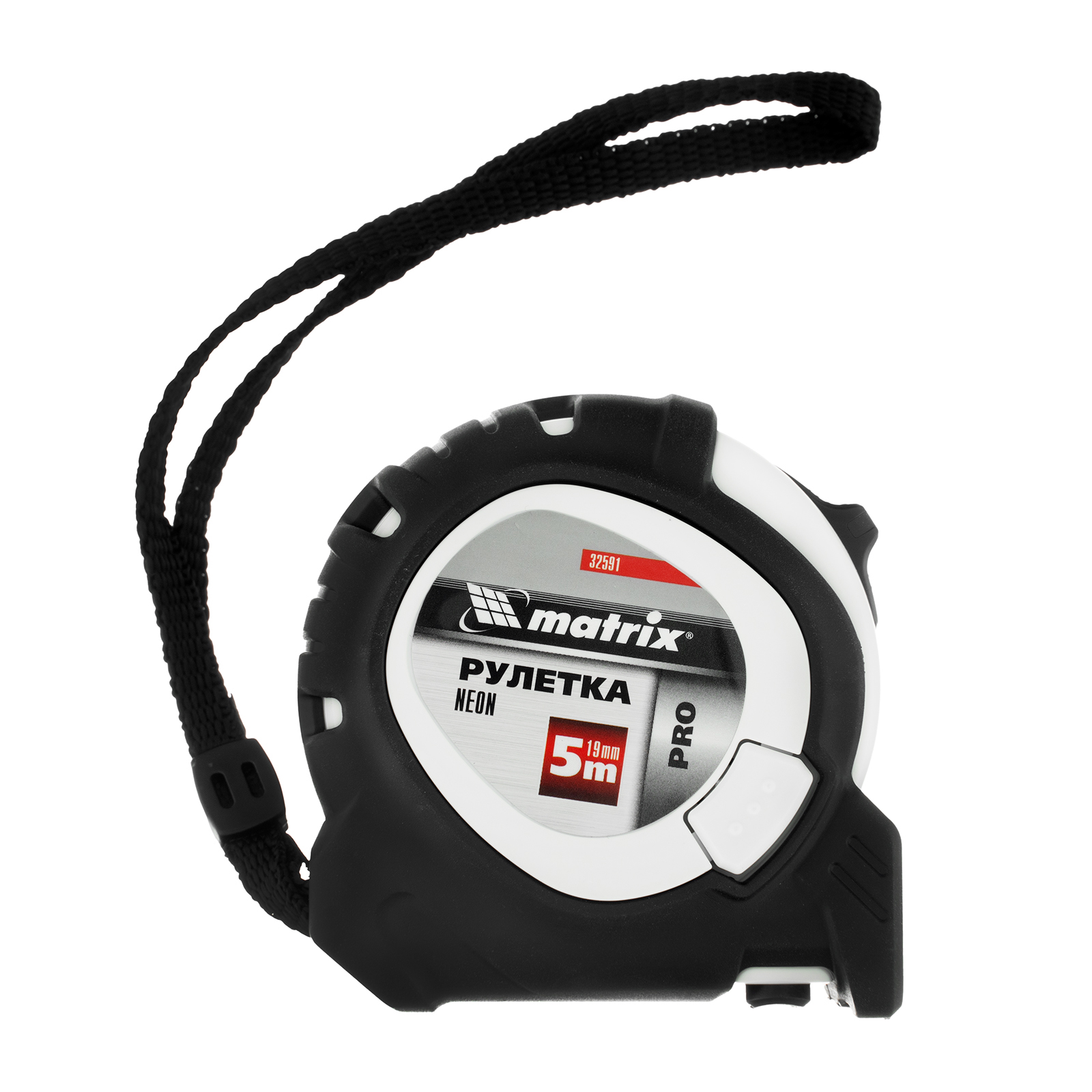 Рулетка Matrix PRO Neon 32591 в обрезиненном корпусе, с 3 механизмами фиксации ленты длиной 5 м и шириной 19 мм, служит для определения расстояний и размеров различных предметов. Крупные цифры на матовом желто-зеленом полотне хорошо видны, что облегчает считывание результатов. Измерительное полотно можно зафиксировать на нужной отметке при помощи стопора или одной из двух кнопок-пауз — это удобно при проведении большого количества замеров. Рулетка предназначена для выполнения профессиональных и бытовых измерительных работ.