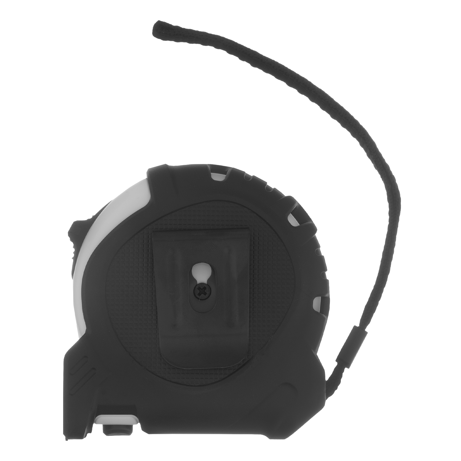 - Удобная транспортировка — рулетку можно повесить на запястье за ремешок или закрепить на поясе при помощи металлического зажима на корпусе.