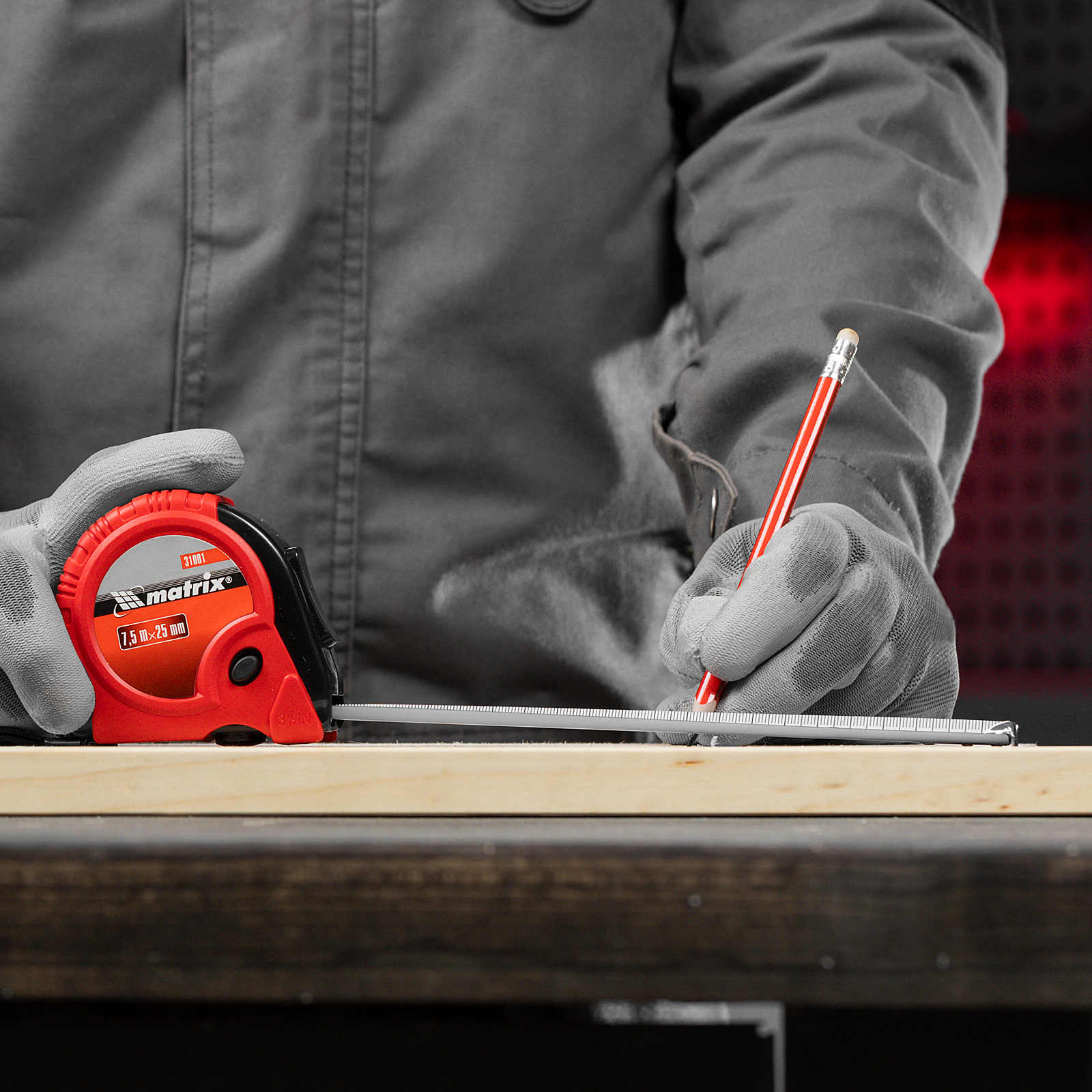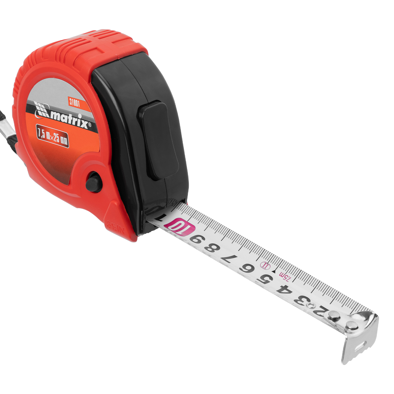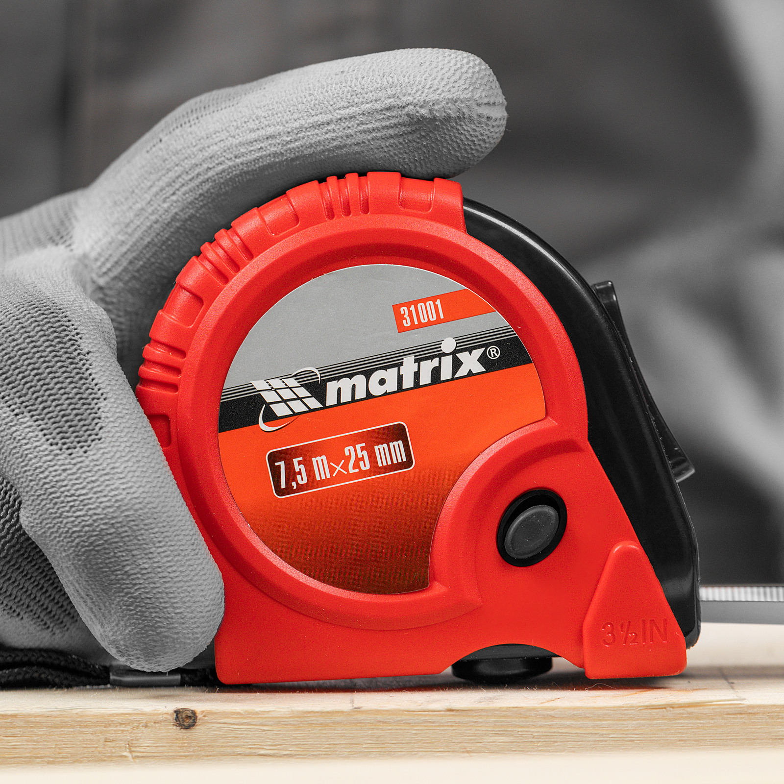 Рулетка Matrix Rubber 31001 с лентой длиной 7,5 м и шириной 25 мм, в обрезиненном корпусе, — измерительный инструмент для определения размеров и расстояний. Имеет самый распространенный 2 класс точности и цену деления 1 мм. Широкая и упругая лента из стали упрощает проведение измерений в труднодоступных местах. Рулетка будет полезна во время ремонта и строительства, пригодится также в домашнем хозяйстве.