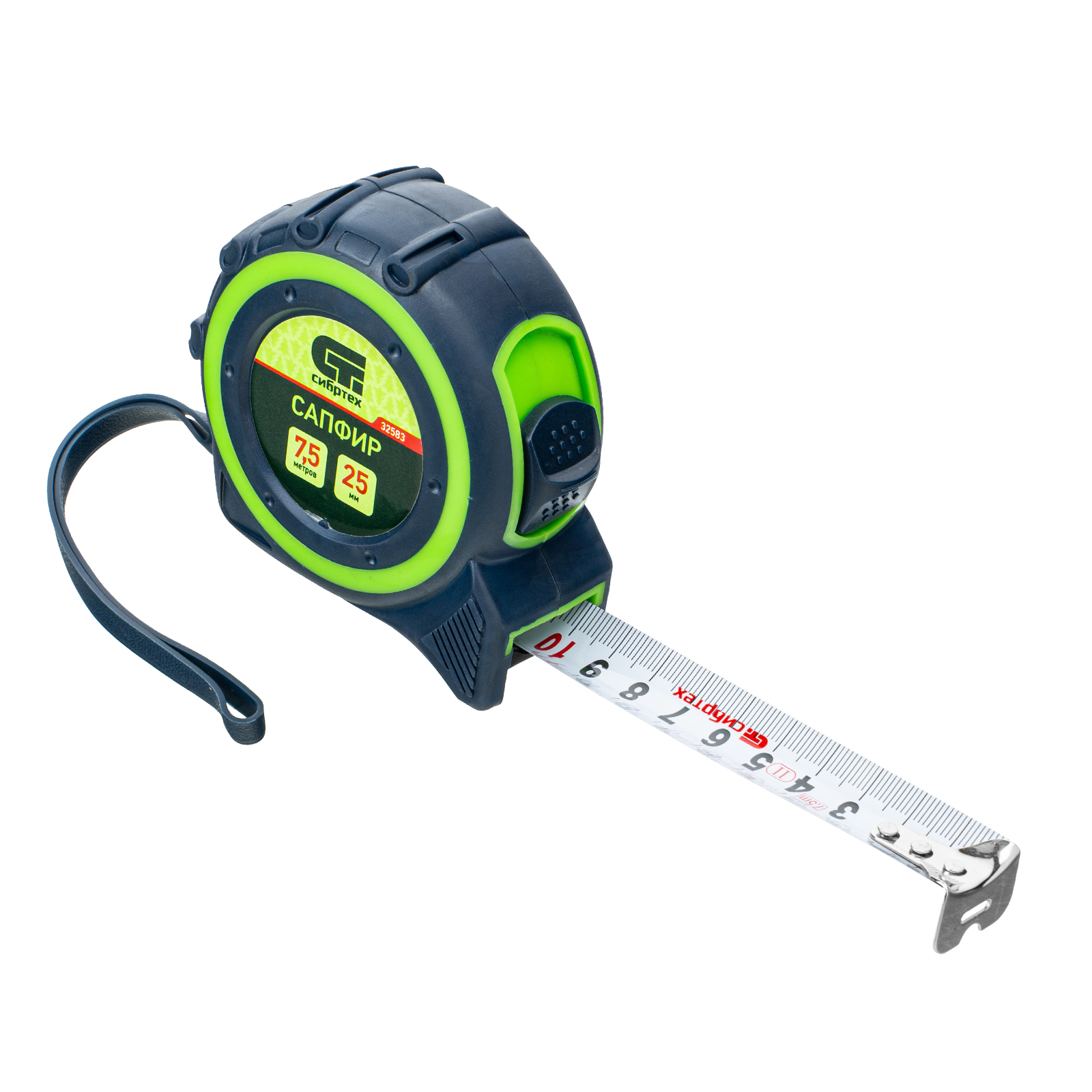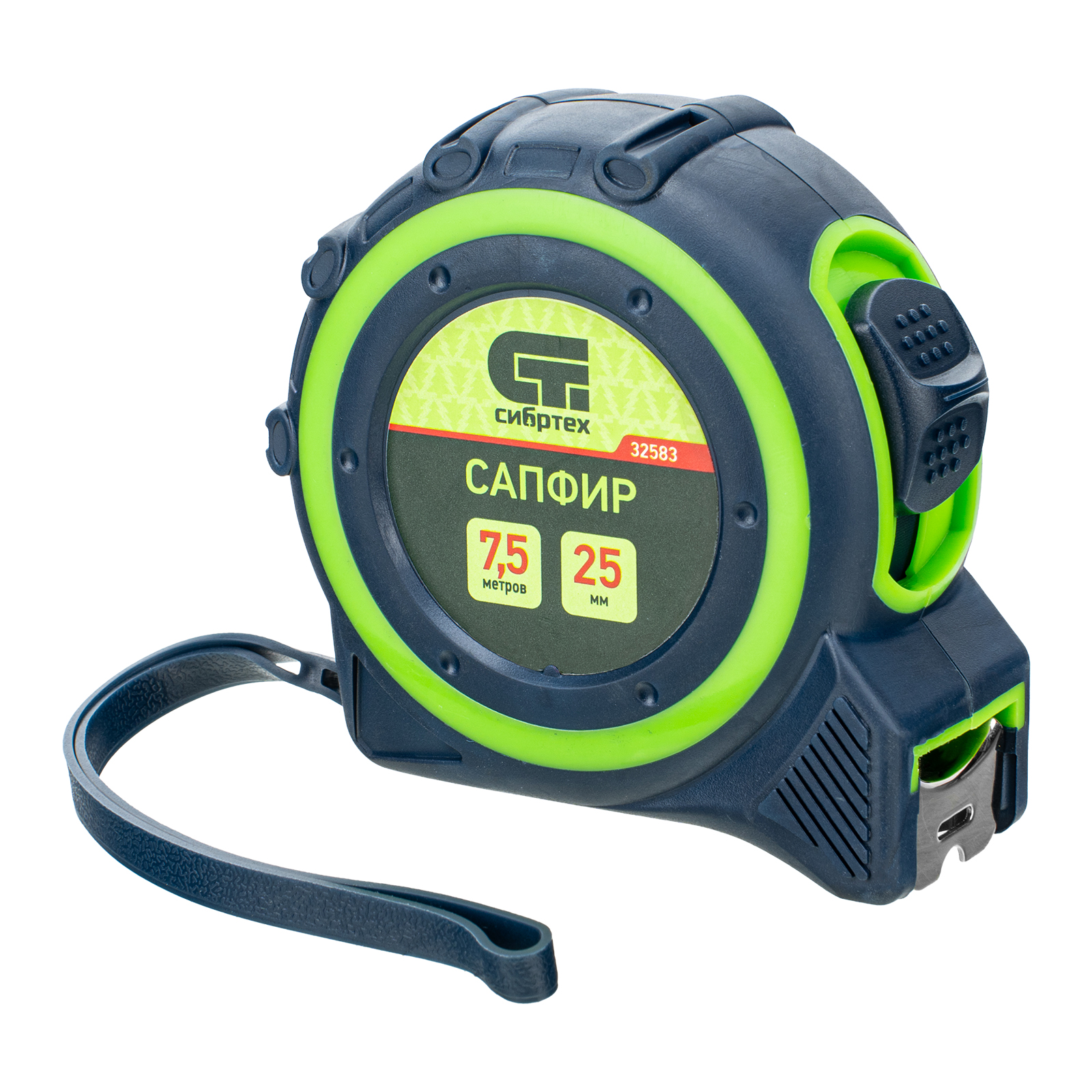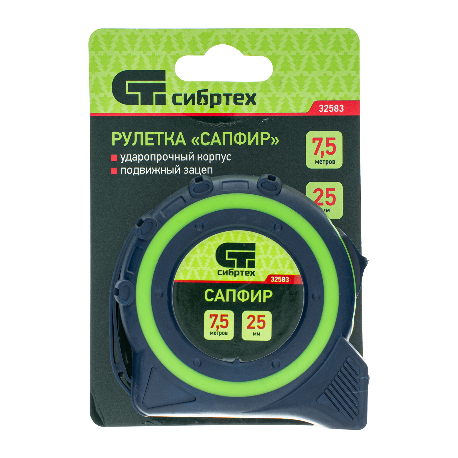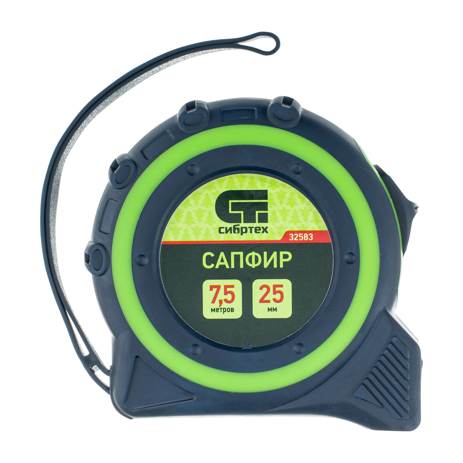 Рулетка Сибртех Сапфир 32583 с лентой 7,5 м х 25 мм выполнена в двухкомпонентном корпусе. Инструмент поможет определить длину заготовок, материалов, конструкций и т.д. Будет полезна дома, в гараже, мастерской, при проведении монтажных и ремонтных работ. Зацеп с отверстием позволяет использовать рулетку в качестве циркуля.