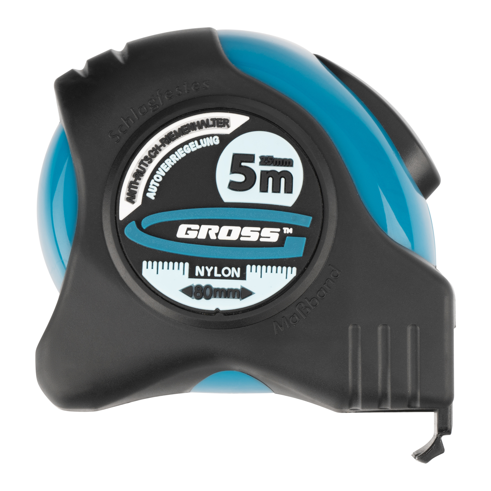 Рулетка Gross «Schlagfest» 31113 с магнитным обрезиненным зацепом, двухсторонней шкалой и функцией автоматической фиксации полотна длиной 5 м и шириной 25 мм, с нейлоновым покрытием, позволяет определять размеры предметов, вычислять площадь помещения и проводить другие измерительные работы. Магнитный обрезиненный зацеп надежно фиксируется на скользких и металлических поверхностях со сложной формой. Широкое упругое полотно облегчает работу в труднодоступных местах. Карманная рулетка пригодится на строительной площадке и в быту.