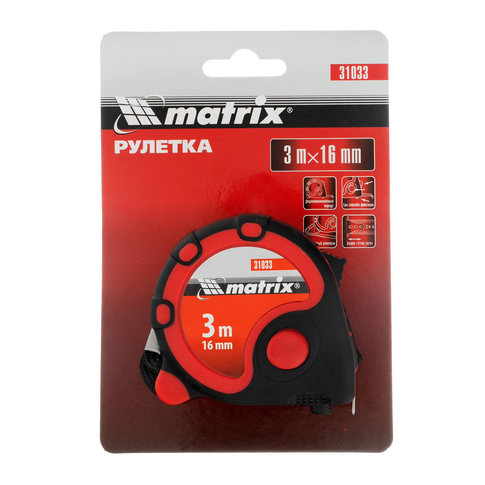 Рулетка Matrix Status 3 fixations 31033 в двухкомпонентном корпусе, с 3 способами фиксации ленты длиной 3 м и шириной 16 мм, предназначена для проведения измерений, имеет 2 класс точности и цену деления 1 мм. Механизм рулетки помещен в частично обрезиненный корпус из прочного пластика, что защищает инструмент от повреждений в результате случайных падений или ударов. Зацеп надежно прикреплен к измерительной ленте заклепками. Рулетка пригодится строителям, мастерам по ремонту, будет полезна и в быту.