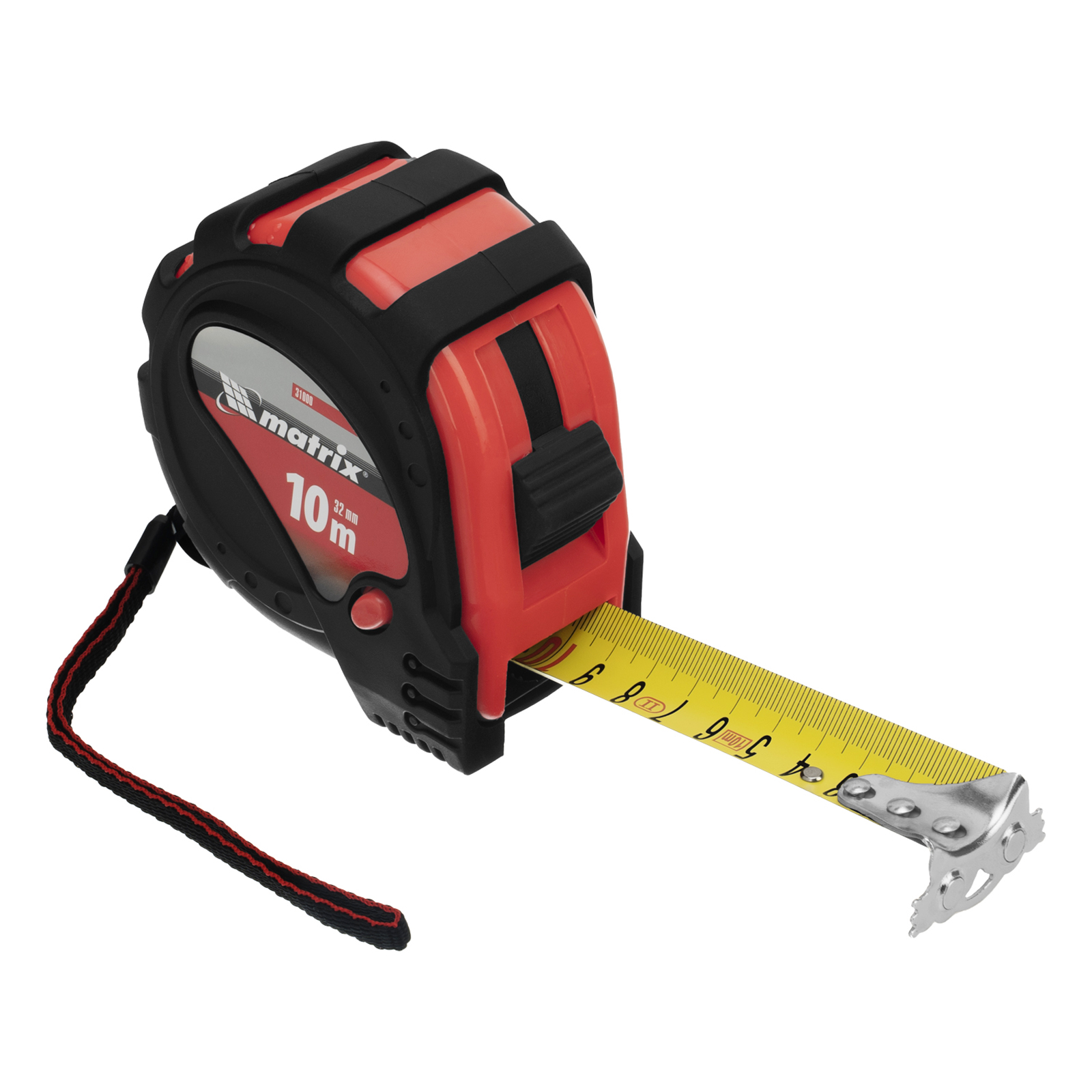Рулетка Matrix Status magnet 3 fixations 31000 с полотном длиной 10 м и шириной 32 мм, в обрезиненном корпусе, оснащенная зацепом с магнитом, предназначена для измерения различных объектов и расстояний. Имеет класс точности 2 и цену деления 1 мм, что обеспечивает достаточную результативность замеров. Магнитный зацеп позволяет четко фиксировать измерительное полотно на металлических предметах. Стальная лента шириной 32 мм обладает большой упругостью, что облегчает работу в труднодоступных местах. Рулетка будет полезна при проведении строительных работ, а также пригодится в быту.