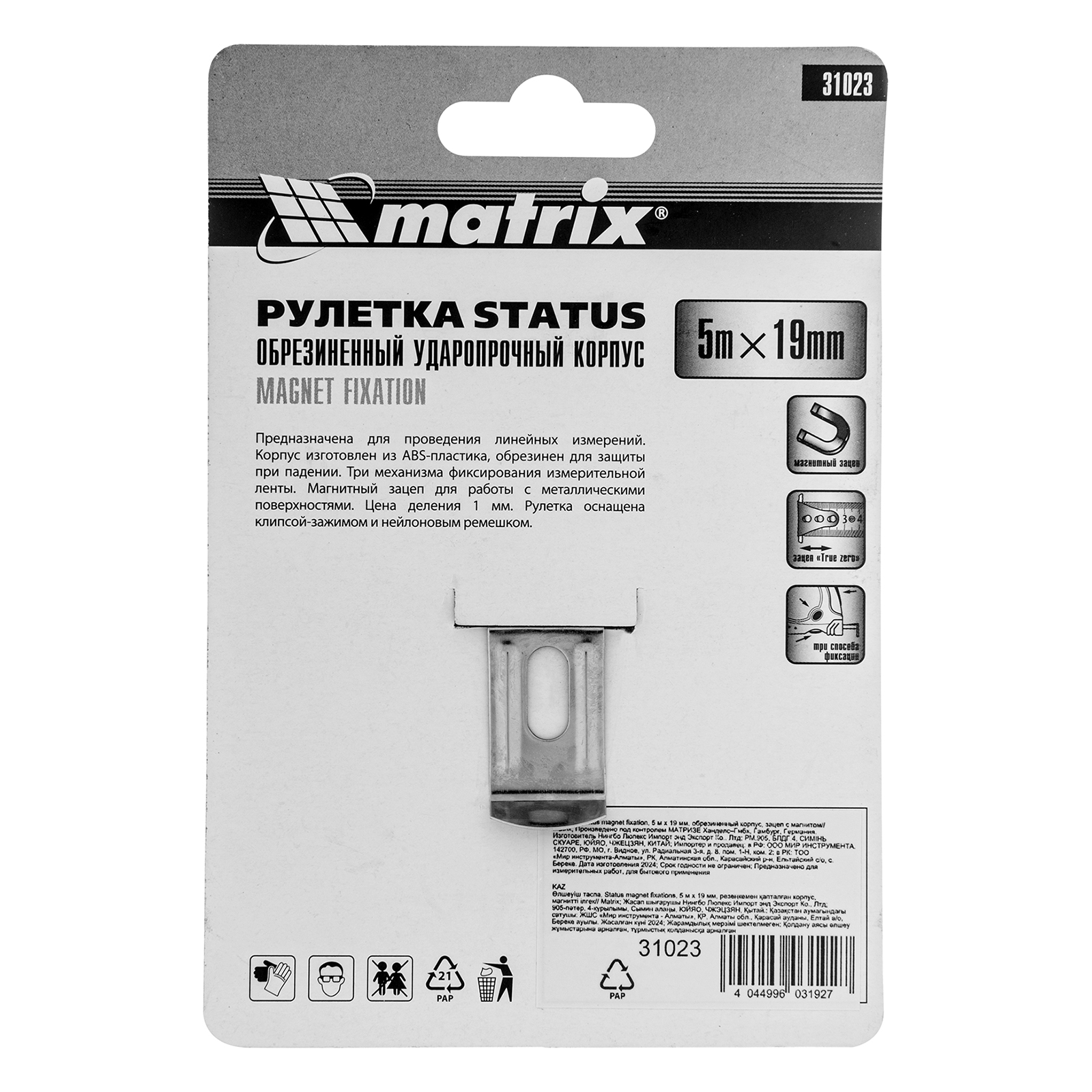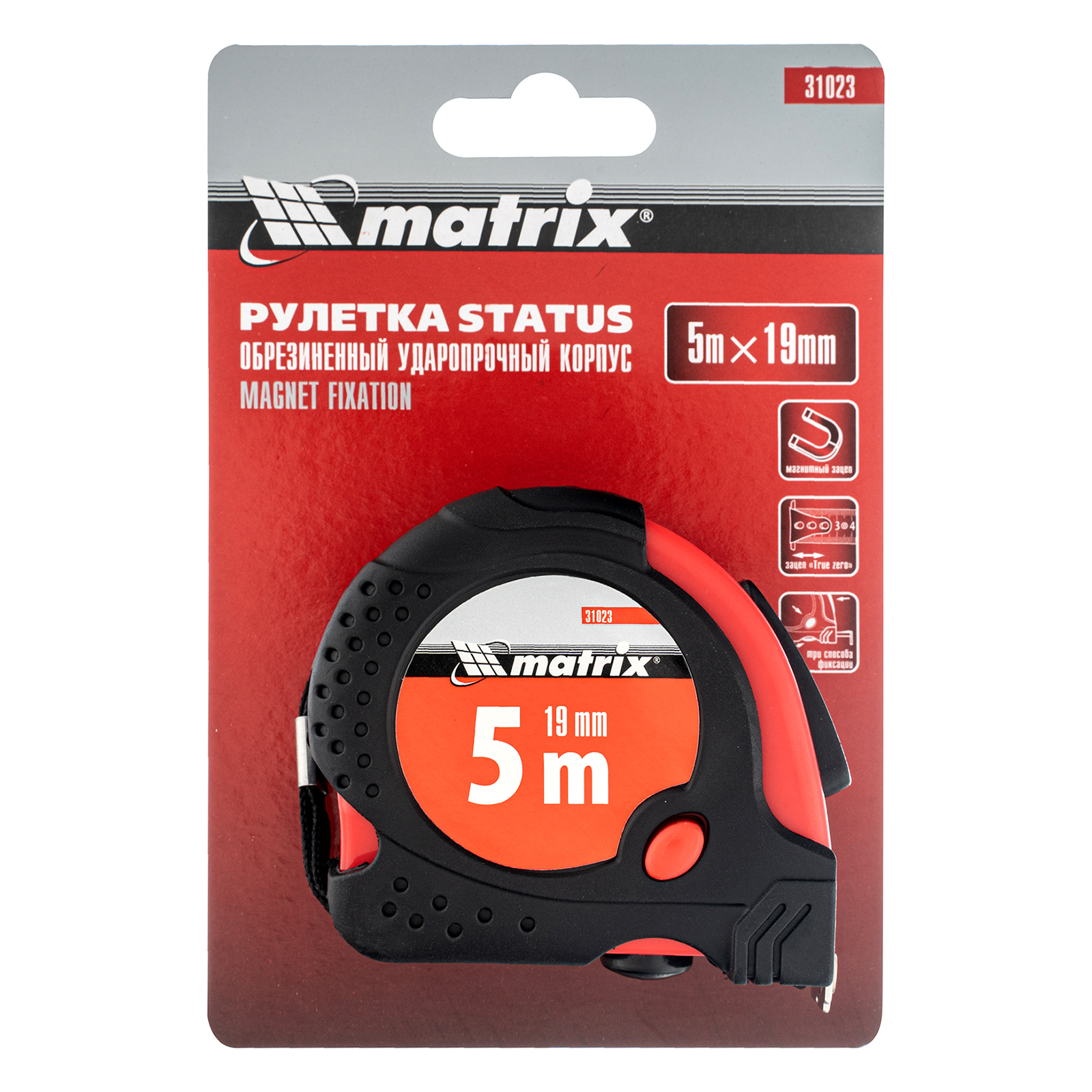 Рулетка Matrix Status magnet fixation 31023 с полотном длиной 5 м и шириной 19 мм, в обрезиненном корпусе, оснащенная зацепом с магнитом, предназначена для измерения различных объектов и расстояний. Имеет класс точности 2 и цену деления 1 мм, что обеспечивает достаточную результативность замеров. Магнитный зацеп позволяет четко фиксировать измерительное полотно на металлических предметах. Функция «true zero» повышает точность расчетов, поскольку нивелирует погрешность в виде толщины самого зацепа. Рулетка будет полезна во время проведения строительных работ, а также пригодится в быту.