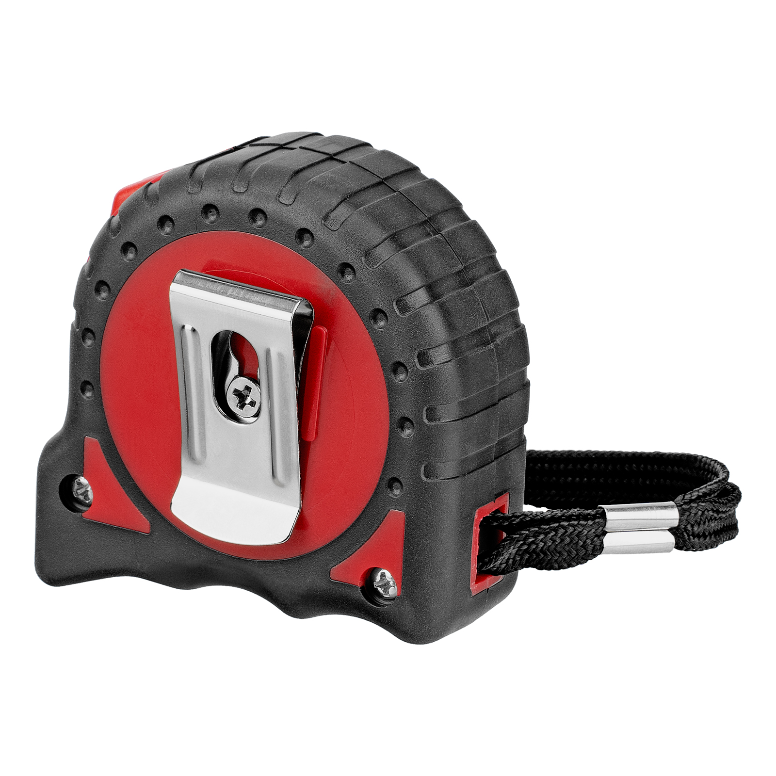 Комфортная транспортировка — нейлоновый ремешок позволяет подвешивать рулетку на запястье, при помощи металлической клипсы-зажима ее можно зафиксировать на поясе.