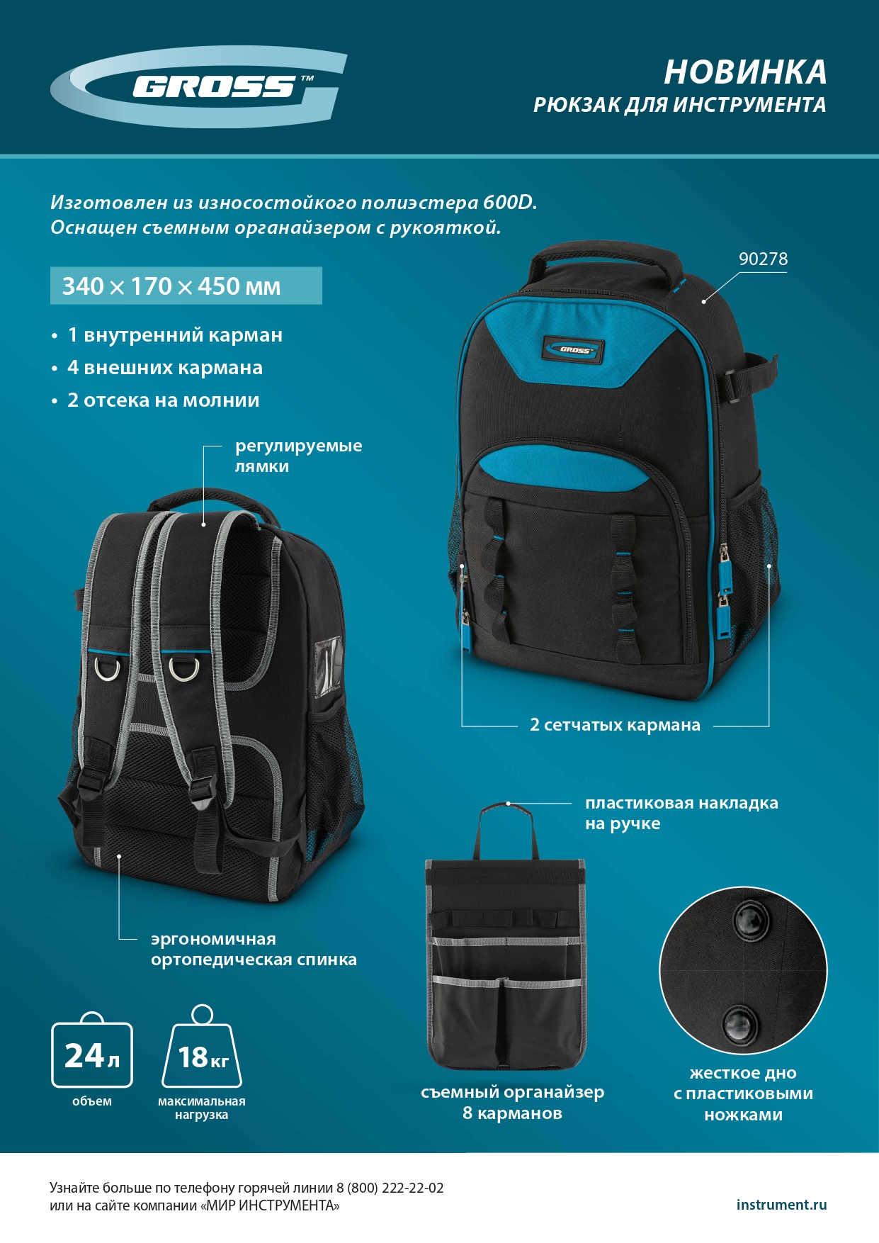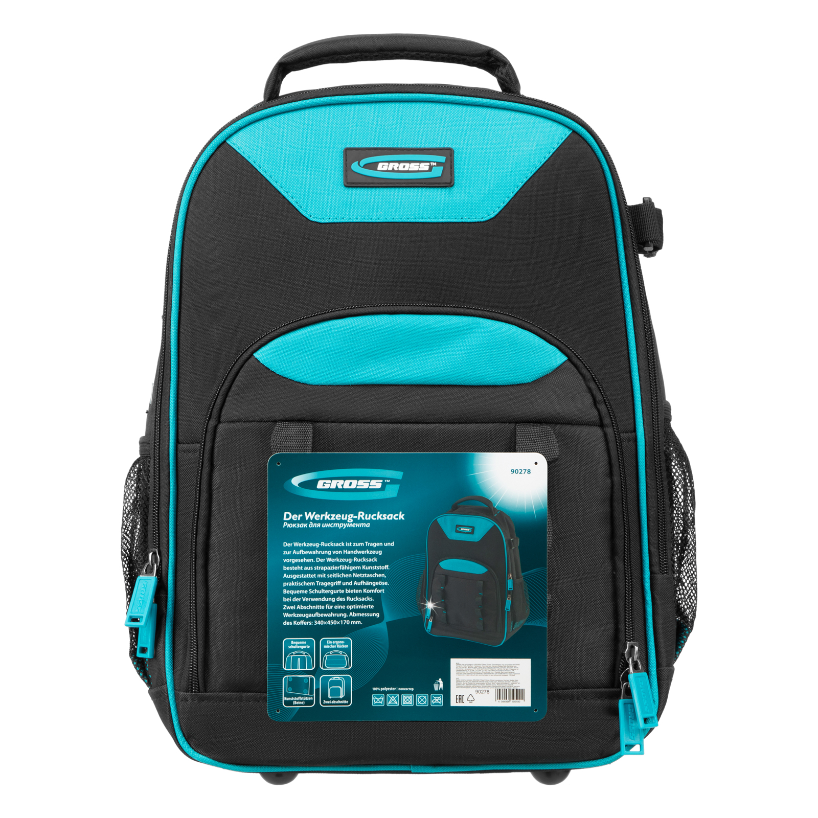 Рюкзак Gross 90278 габаритами 450 х 340 х 170 мм, с 13 карманами, предназначен для транспортировки ручного и электроинструмента. Изготовлен из высокопрочного синтетического полиэстера плотностью 600 D. Оптимален для использования на выездных работах.