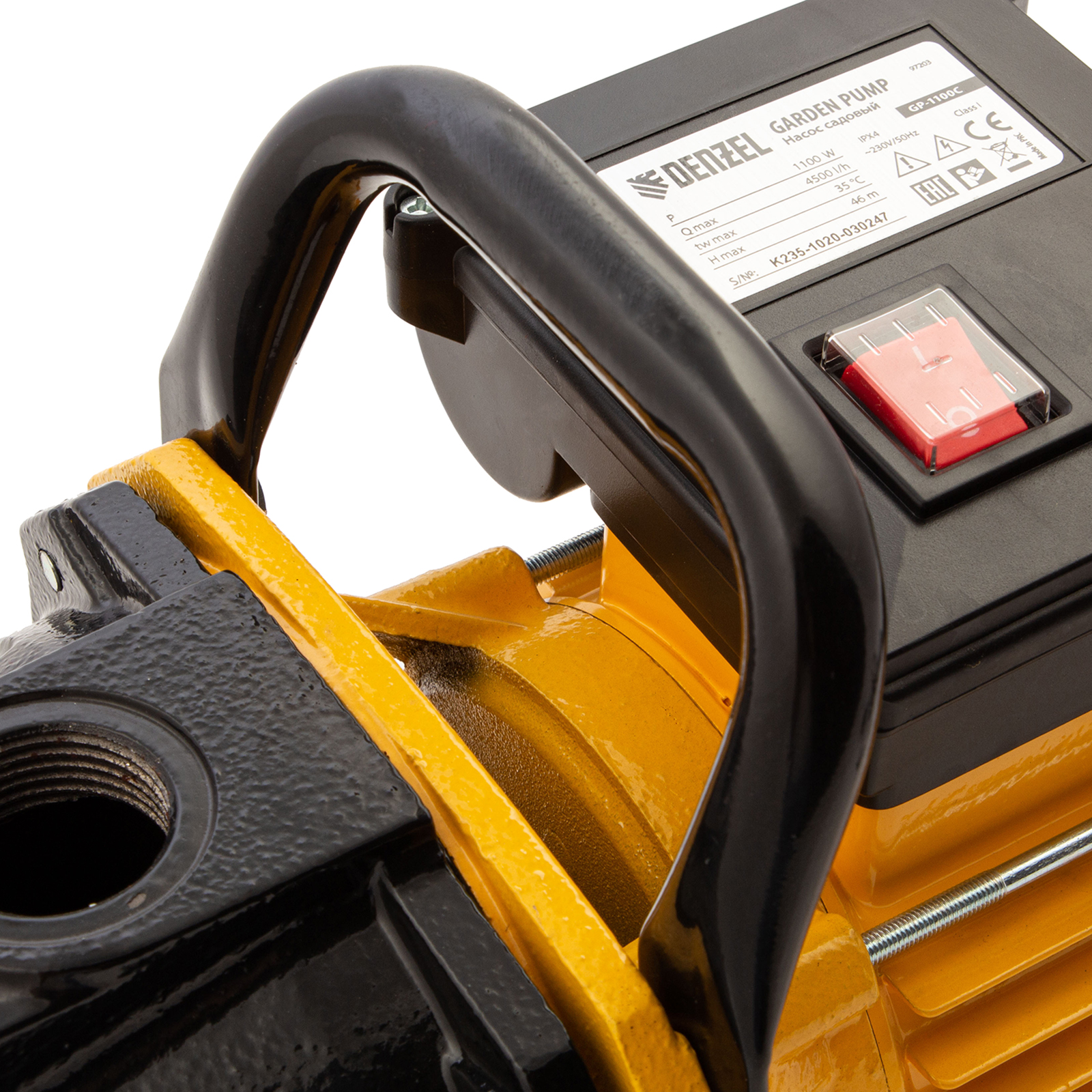 Садовый поверхностный насос Denzel GP1100C 97203 с корпусом насосной части из чугуна, мощностью 1100 Вт и производительностью 4500 л/ч, обеспечивает стабильный напор до 46 м и используется для подъема чистой воды из резервуаров и колодцев с глубины до 8 м. Подходит для организации систем полива на дачном участке и повышения давления в водопроводной системе загородного дома. Высокая производительность позволяет применять насос в системах с большим количеством водоразборных точек.