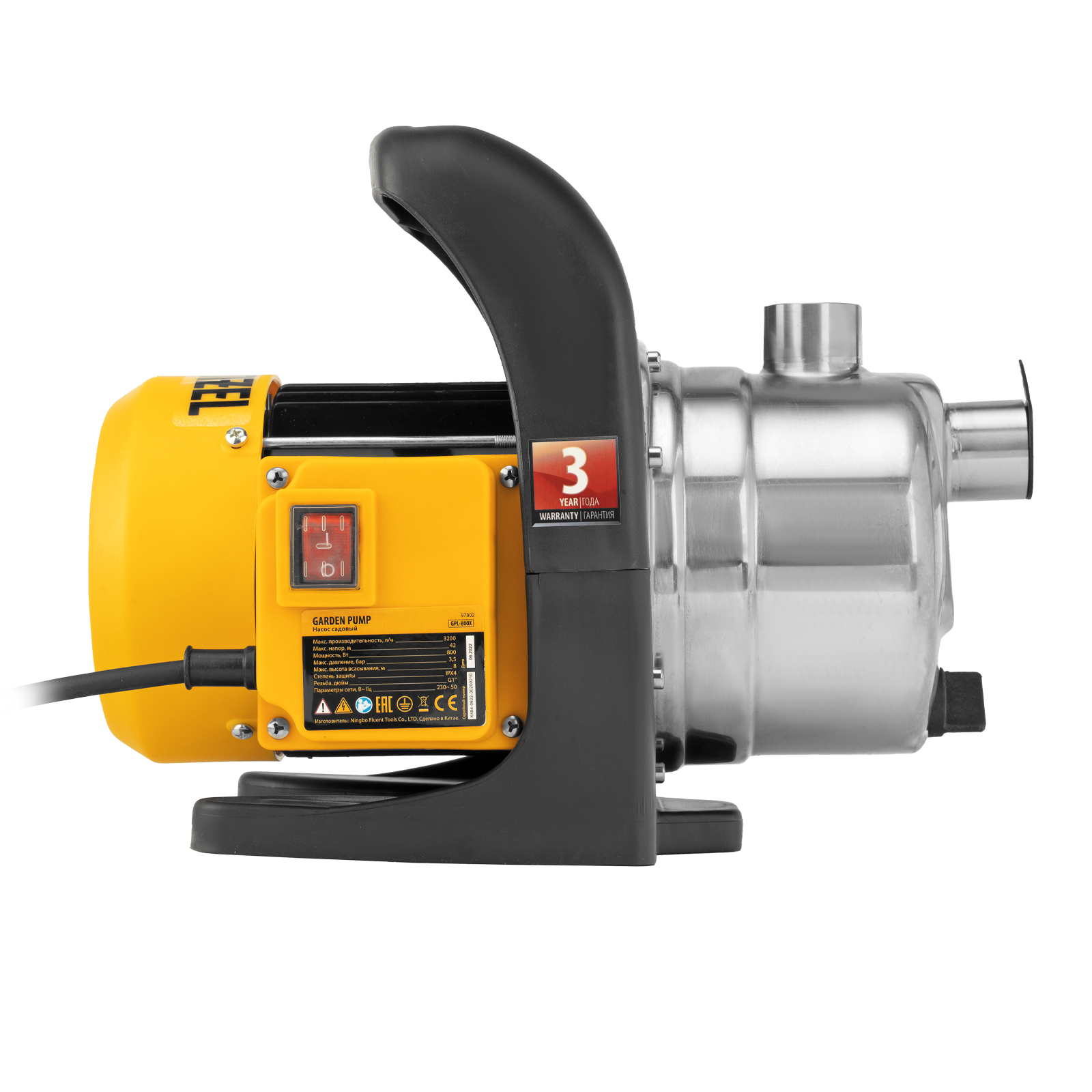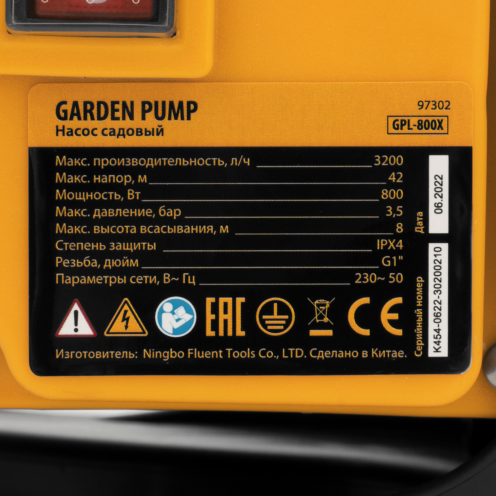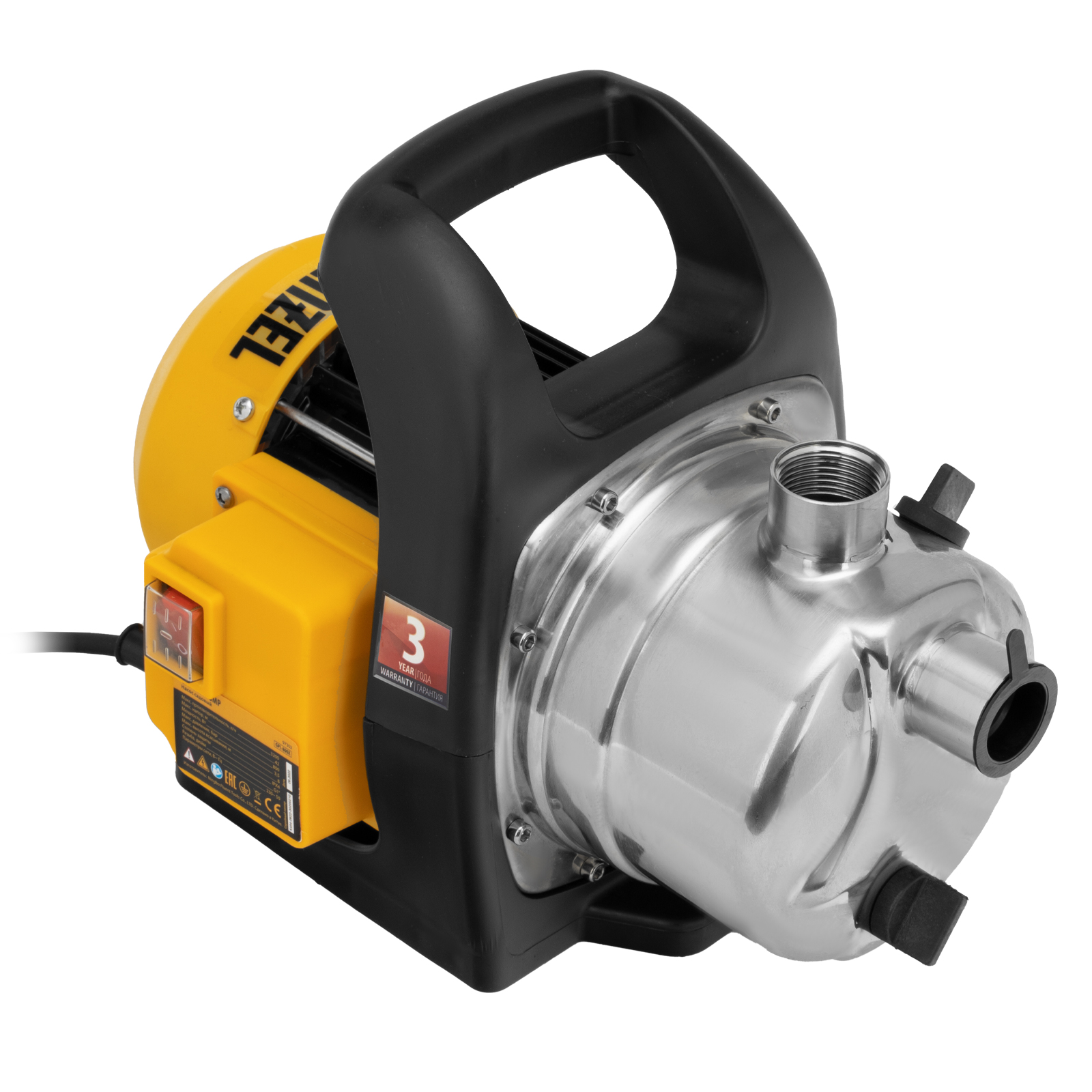 Садовый поверхностный насос Denzel GPL800X 97302 мощностью 800 Вт и производительностью 3200 л/ч, с корпусом из «нержавейки», предназначен для забора чистой воды из колодцев, водоемов, различных резервуаров, и подъема ее на высоту до 42 м. Используется для проведения поливочных работ или организации системы водоснабжения в загородном доме. Способен обеспечить водой несколько точек водоразбора.