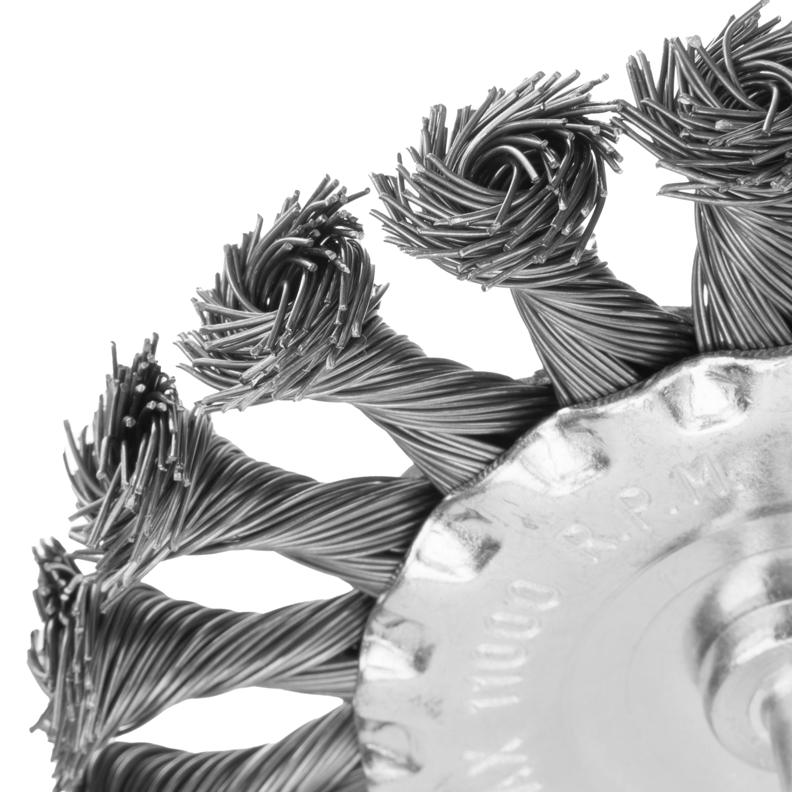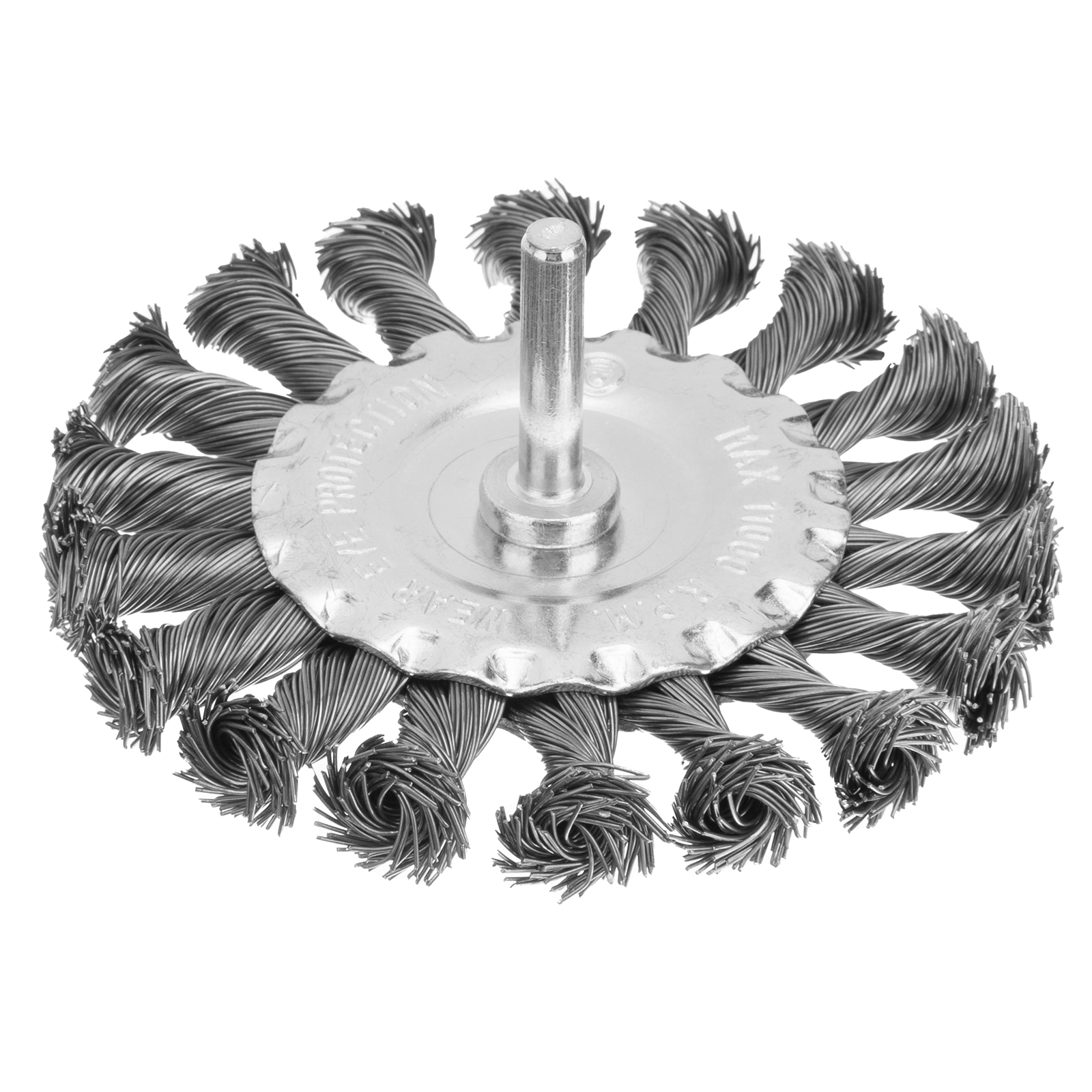 - Эффективность и износостойкость — щетина из крученой стальной проволоки диаметром 0,5 мм успешно справляется с толстым слоем ржавчины или лакокрасочного покрытия.