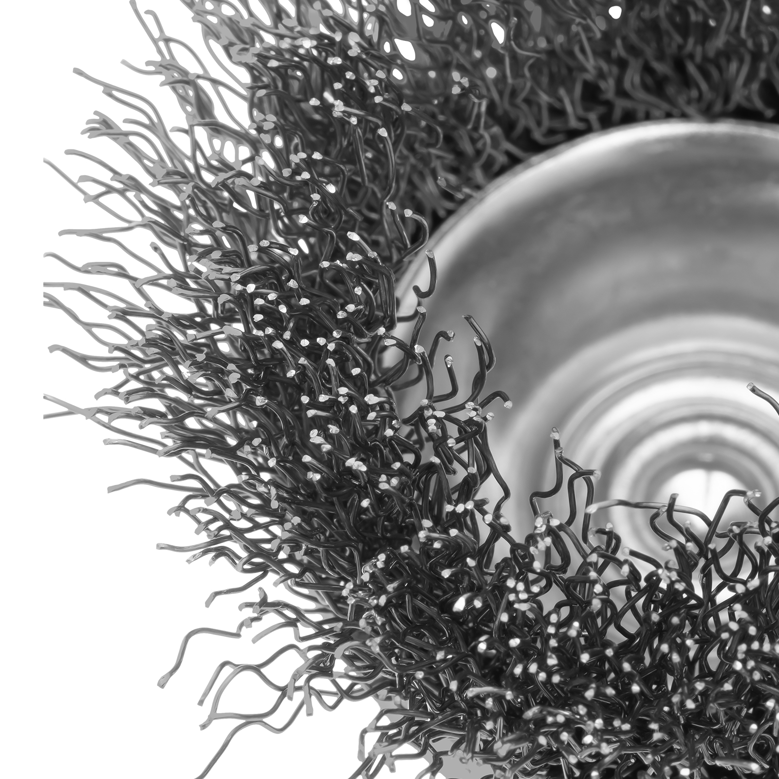 Высокая производительность — щетка имеет форму чашки, что увеличивает площадь прилегания щетины к обрабатываемой поверхности.
