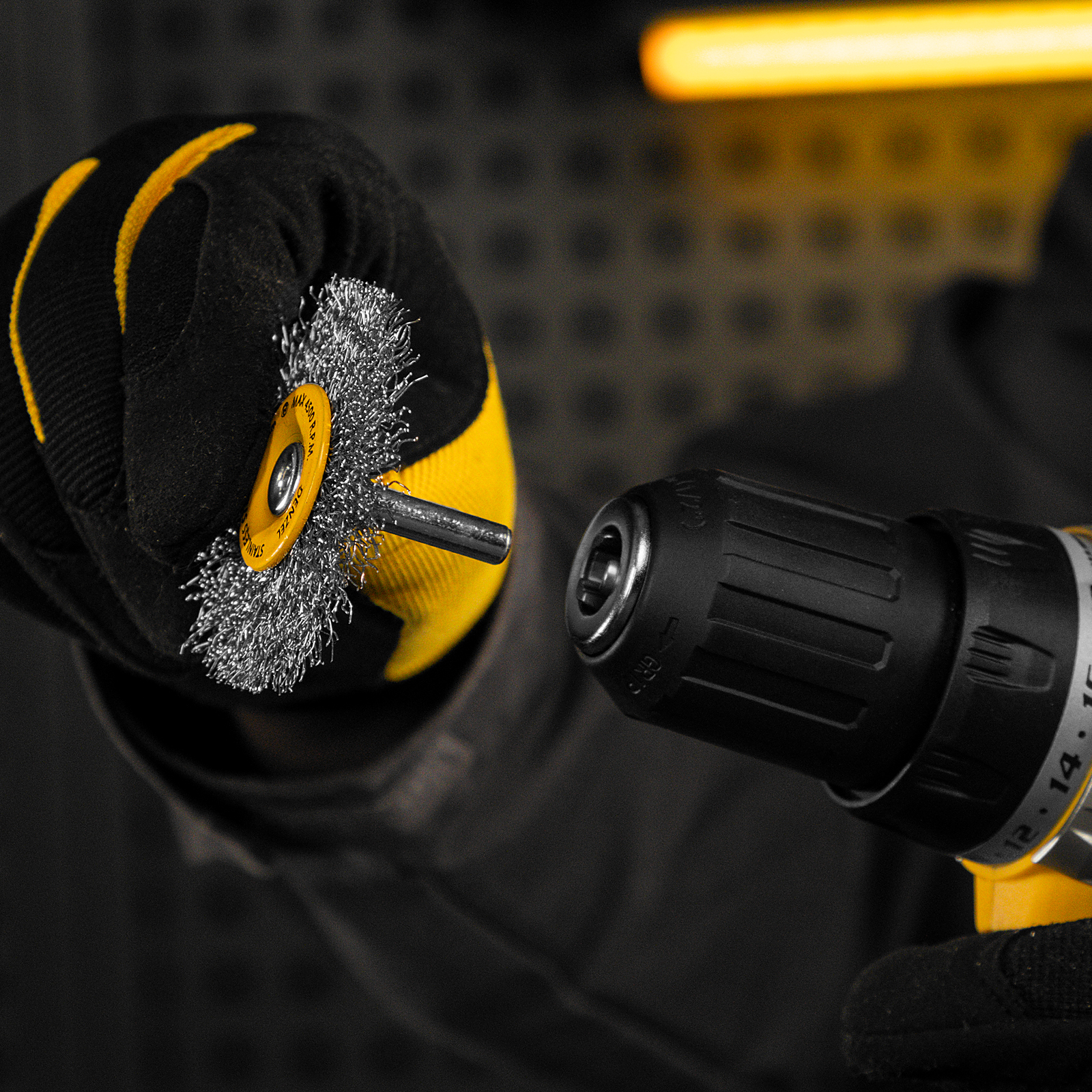 - Быстрая подготовка к работе — щетка имеет хвостовик диаметром 6 мм для установки в патрон дрели.