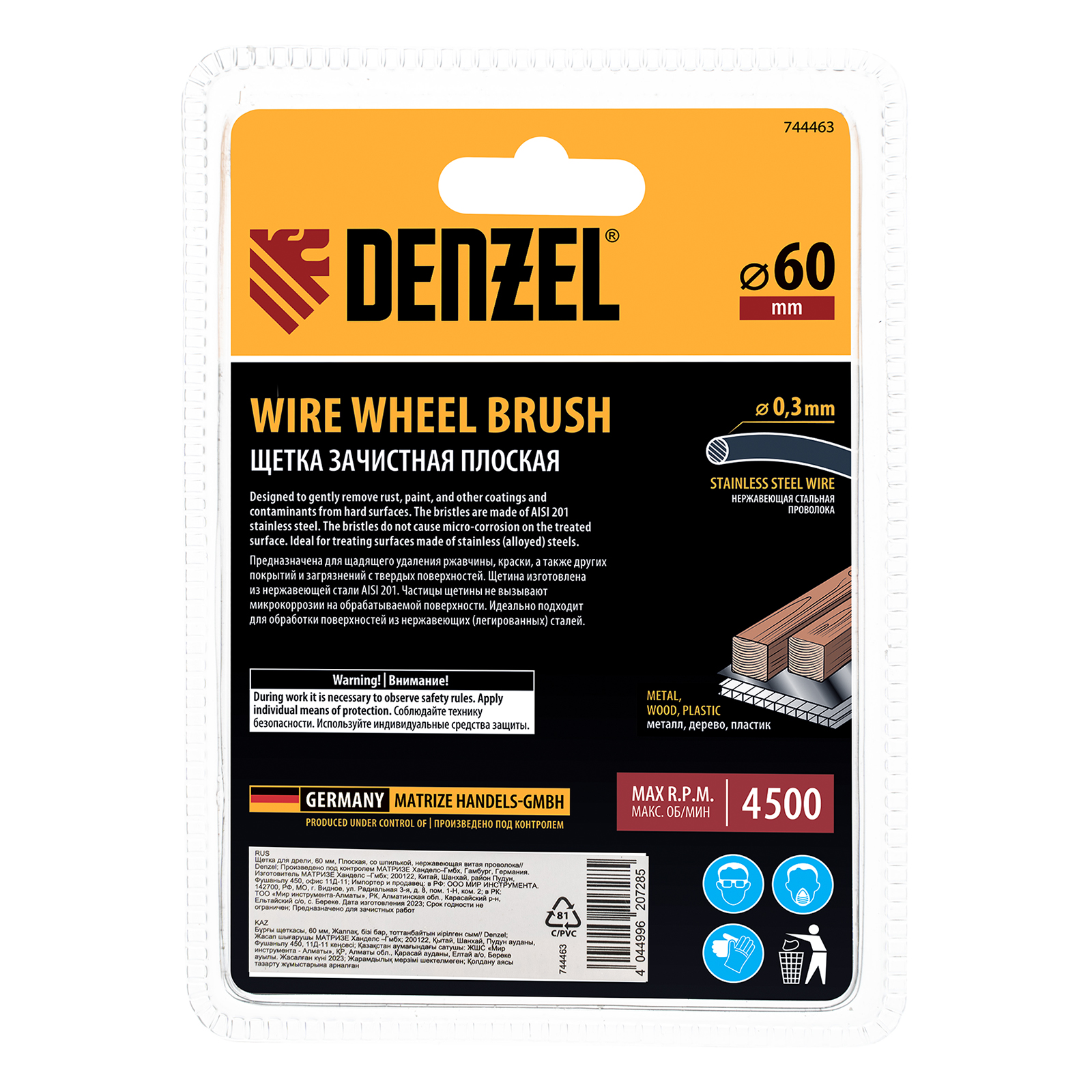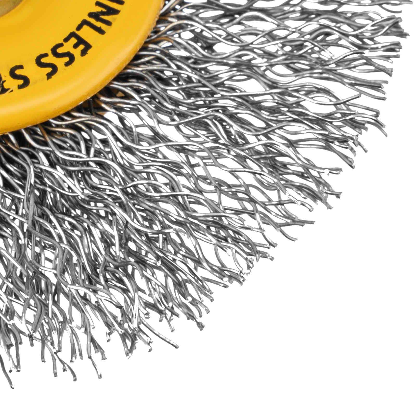 Плоская щетка Denzel 744463 диаметром 60 мм, со шпилькой и щетиной из нержавеющей витой проволоки, предназначена для выполнения зачистных работ. Позволяет бережно обработать поверхность, снять тонкий слой краски, ржавчины, удалить загрязнения. Подходит для твердых материалов: стали, в том числе нержавеющей, древесины, пластика и т.д. Плоская щетка оптимальна для зачистки поверхностей со сложным рельефом, имеющих углы, пазы и изгибы.