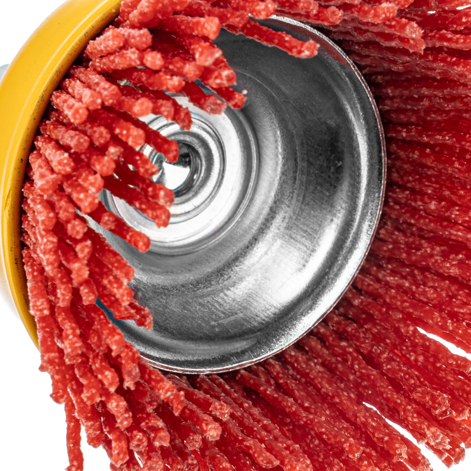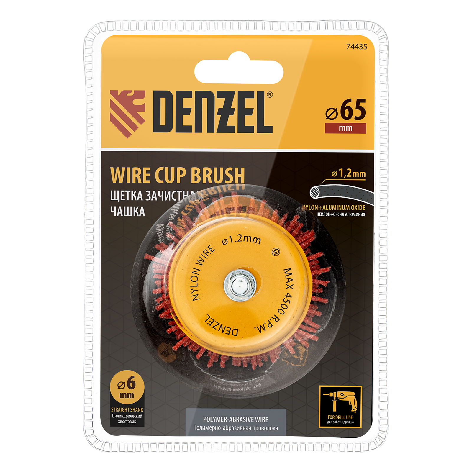 Щетка Denzel 74435 в форме чашки диаметром 65 мм, со шпилькой и нейлоновой щетиной, — насадка для дрели, предназначенная для выполнения шлифовальных работ по пластику, древесине, стали и цветным металлам. Щетина изготовлена из высококачественного нейлона с нанесенным абразивом из оксида алюминия. Щетка оптимальна для деликатного удаления загрязнений, краски, пятен ржавчины с твердых поверхностей. Позволяет придать шероховатость поверхности, подходит для браширования древесины. Насадка удобна для обработки плоских деталей большой площади.