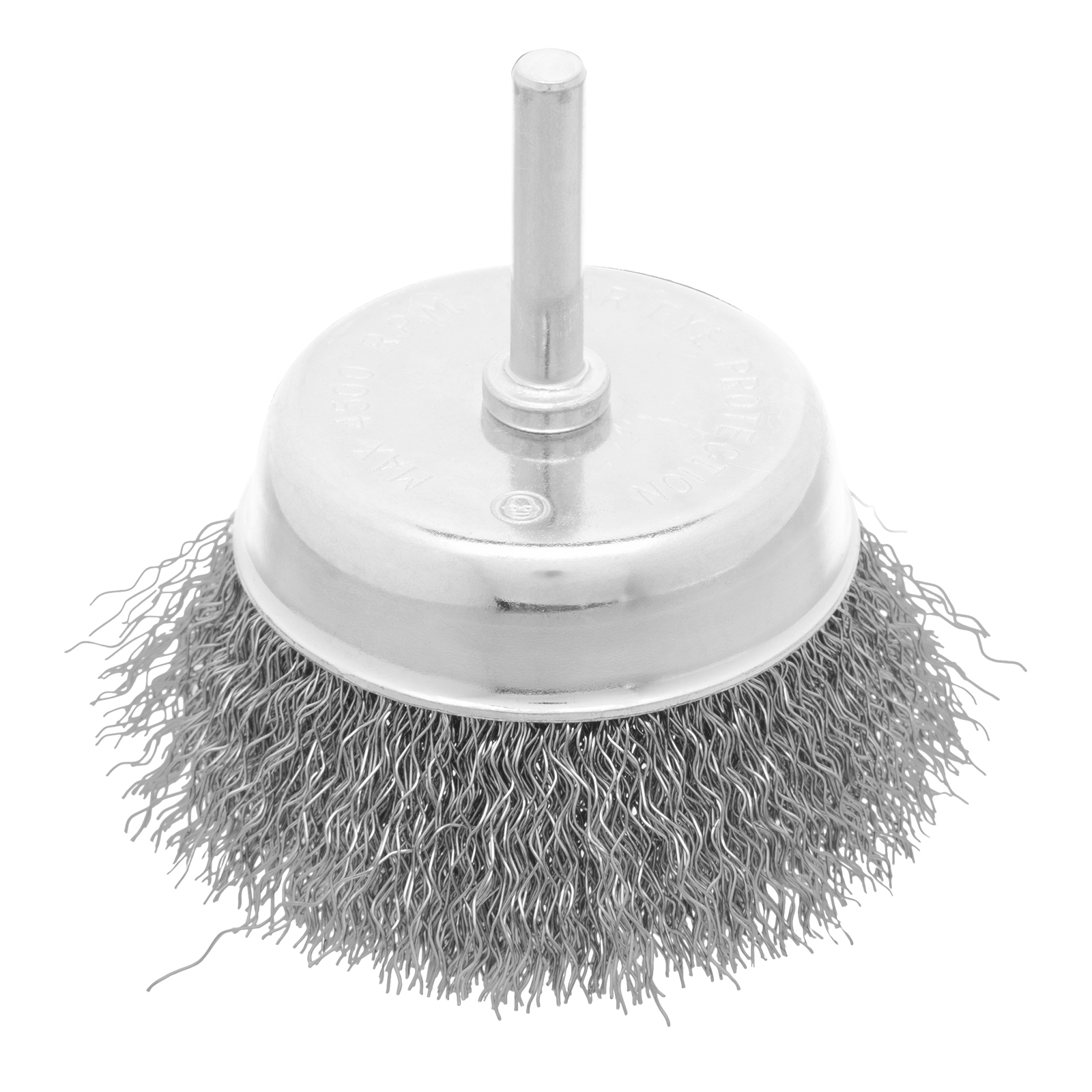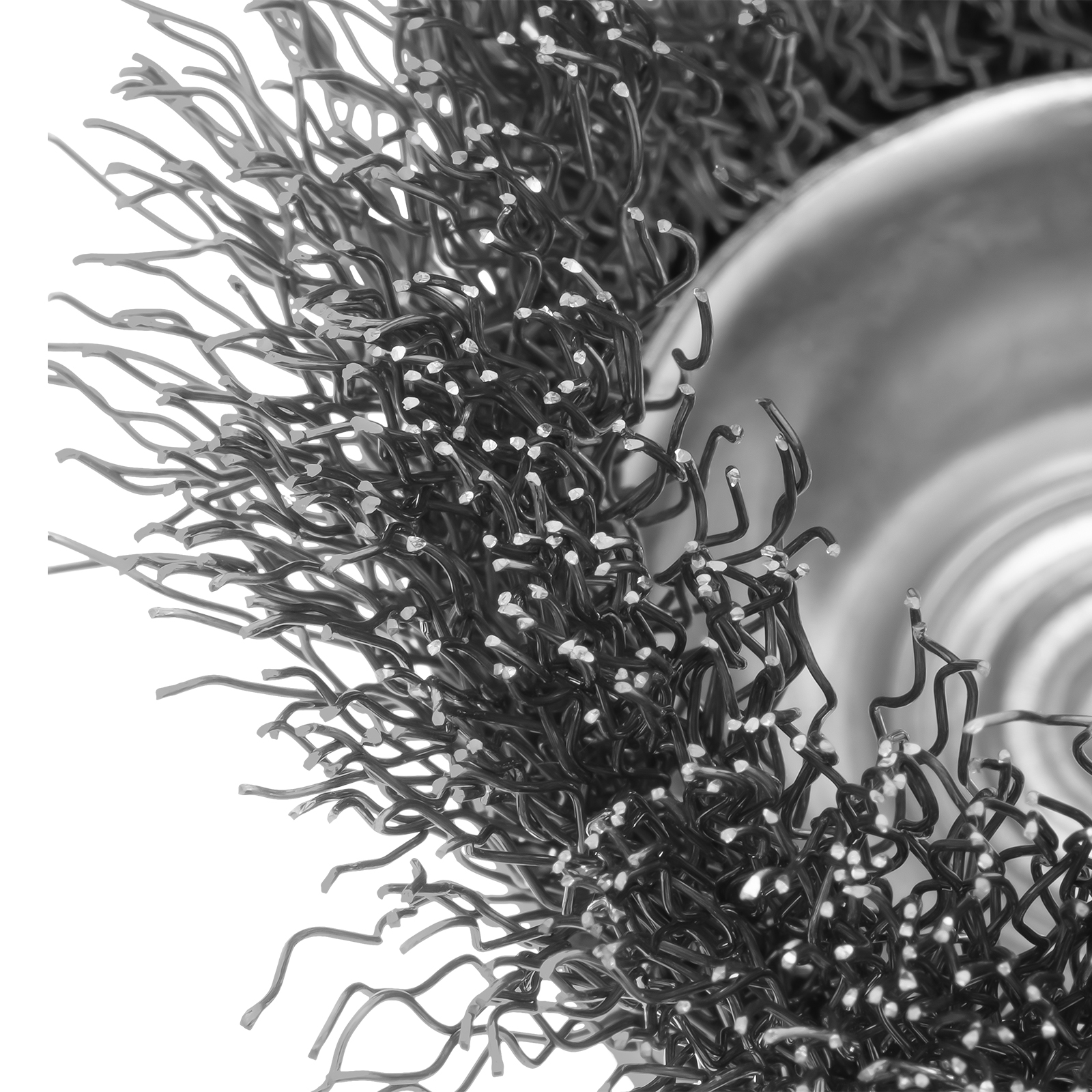 - Высокая производительность — щетка имеет форму чашки, что увеличивает площадь прилегания щетины к обрабатываемой поверхности.