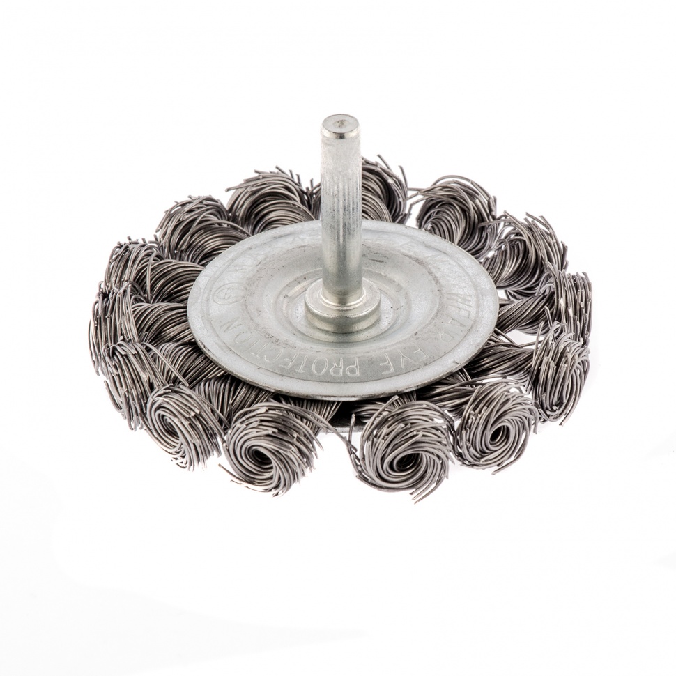 Плоская щетка для дрели Сибртех 744307 диаметром 75 мм, со шпилькой и щетиной из крученой металлической проволоки 0,5 мм, успешно справляется с грубой обработкой твердых поверхностей. Удаляет загрязнения, толстый слой ржавчины, старой краски и лака, эффективно зачищает сварные швы. Благодаря плоской форме щетка удобна для обработки пазов, внутренних углов, резких изгибов и труднодоступных участков. Щетка имеет хвостовик диаметром 6 мм и устанавливается в патрон дрели. Рекомендуемая максимальная скорость вращения — 12500 об/мин. Во время работы следует пользоваться средствами индивидуальной защиты. Щетка пригодится строителям, сотрудникам автомастерских, а также домашним мастерам.