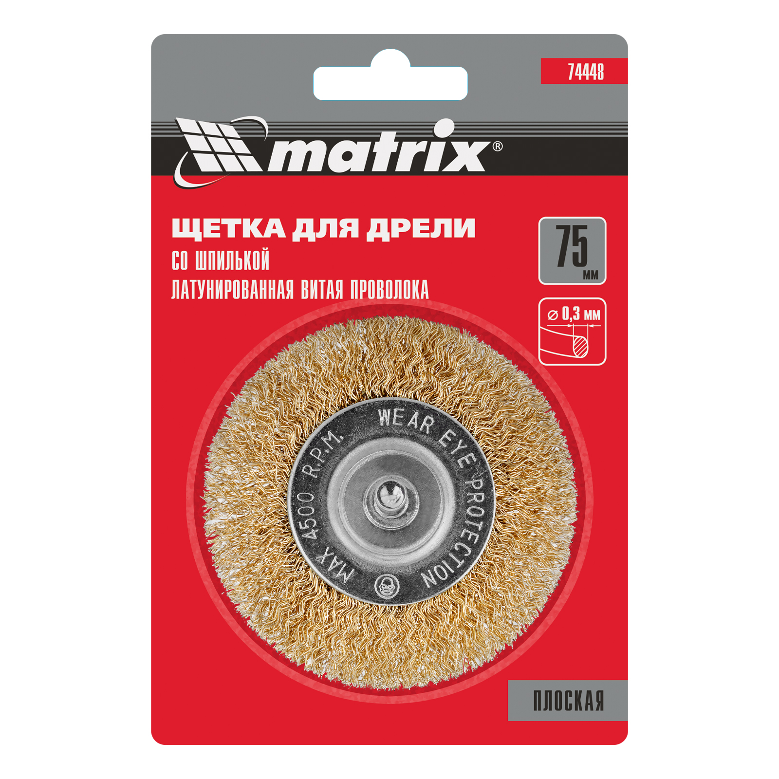 Плоская щетка для дрели Matrix 74448 диаметром 75 мм, со шпилькой и щетиной из латунированной витой проволоки, предназначена для бережной очистки металлических, деревянных, пластиковых поверхностей от загрязнений, старых лакокрасочных материалов и ржавчины. Витая проволока диаметром 0,3 мм проникает в труднодоступные места: пазы, углы, изгибы, узкие участки. Насадку применяют для придания поверхности нужной шероховатости или подчеркивания структуры материала. Хвостовик диаметром 6 мм устанавливается в патрон электродрели, способной работать на рекомендуемой скорости 4500 об/мин. Во время работы следует использовать защитные очки, респиратор, наушники, спецодежду и обувь.