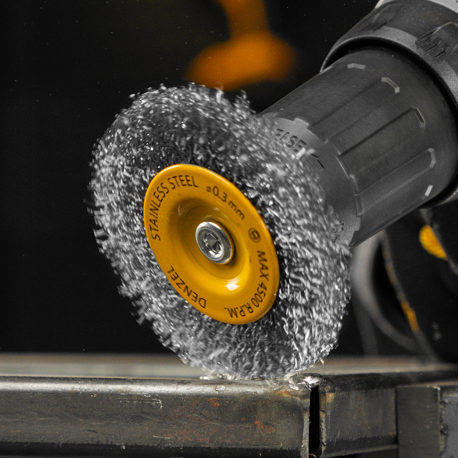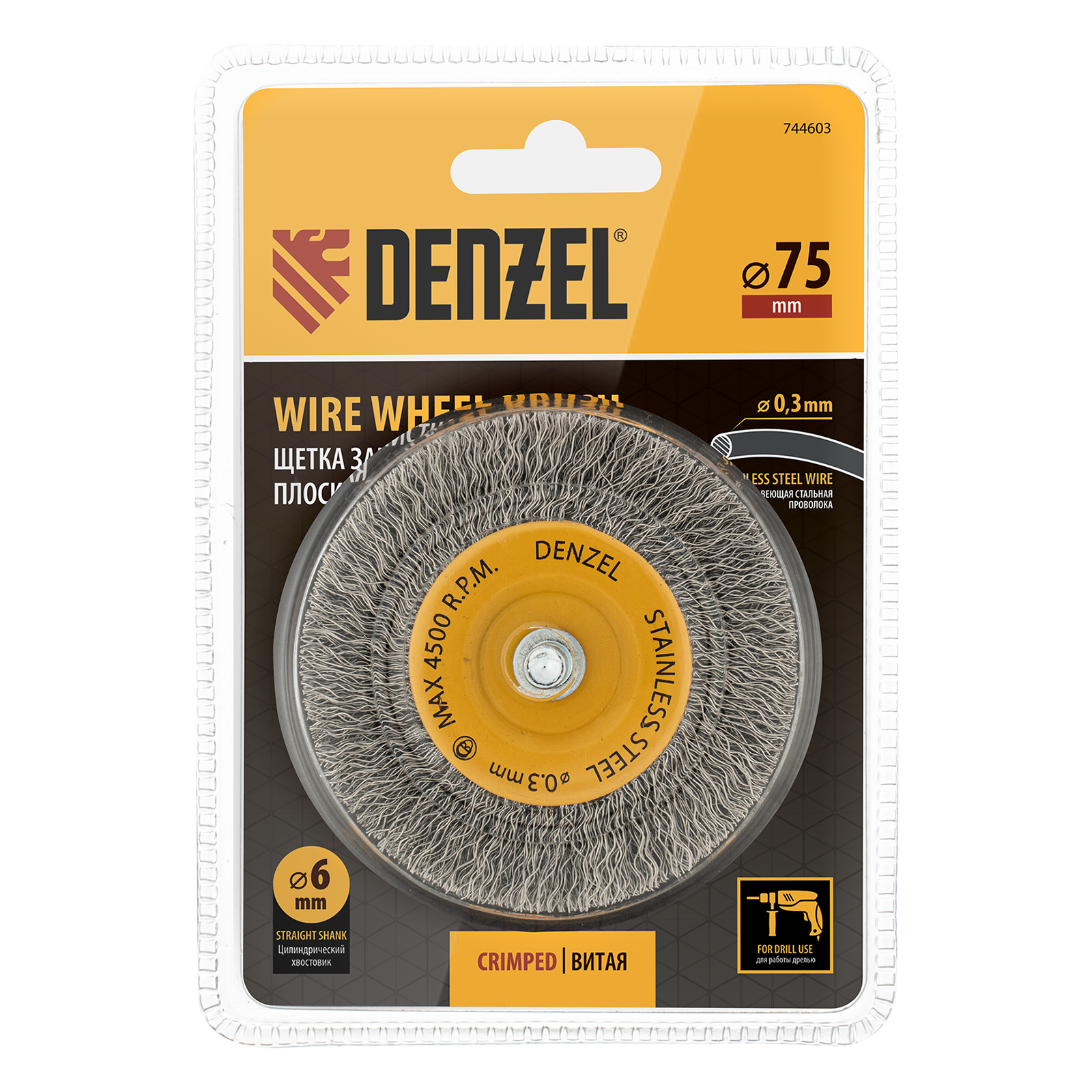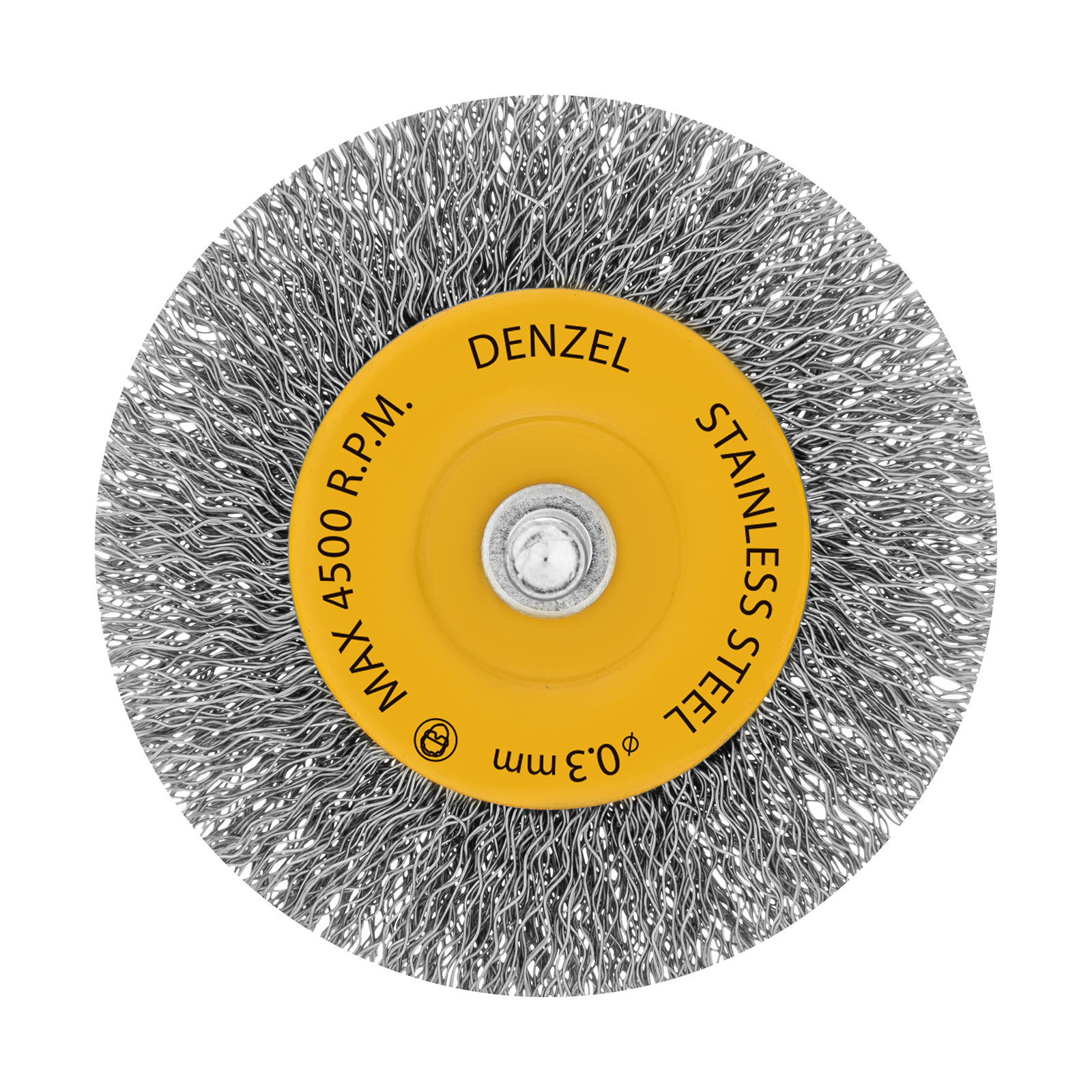 Плоская щетка Denzel 744603 диаметром 75 мм, со шпилькой и щетиной из нержавеющей витой проволоки, предназначена для выполнения зачистных работ. Позволяет обработать поверхность, снять тонкий слой краски, ржавчины, удалить загрязнения. Подходит для твердых материалов: стали, в том числе нержавеющей, древесины, пластика и т.д. Плоская щетка оптимальна для зачистки поверхностей со сложным рельефом, имеющих углы, пазы и изгибы.