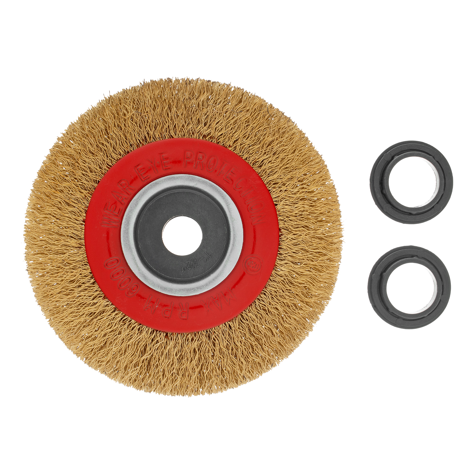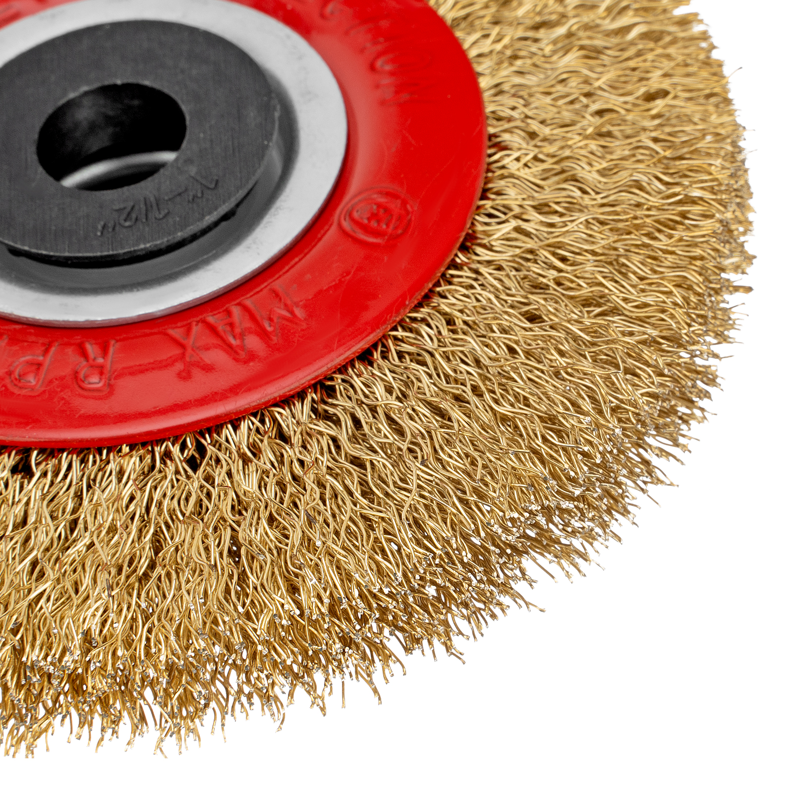Плоская щетка Matrix 74658 диаметром 100 мм, с щетиной из латунированной витой проволоки, устанавливается на точило с посадочным размером 20 мм. Рекомендуемая скорость вращения — не более 6000 об/мин. Витая проволока позволяет в щадящем режиме зачистить тонкий слой ржавчины и лакокрасочных покрытий, удалить различные загрязнения с небольших или хрупких деталей. Благодаря плоской форме щетка подходит для обработки труднодоступных мест.