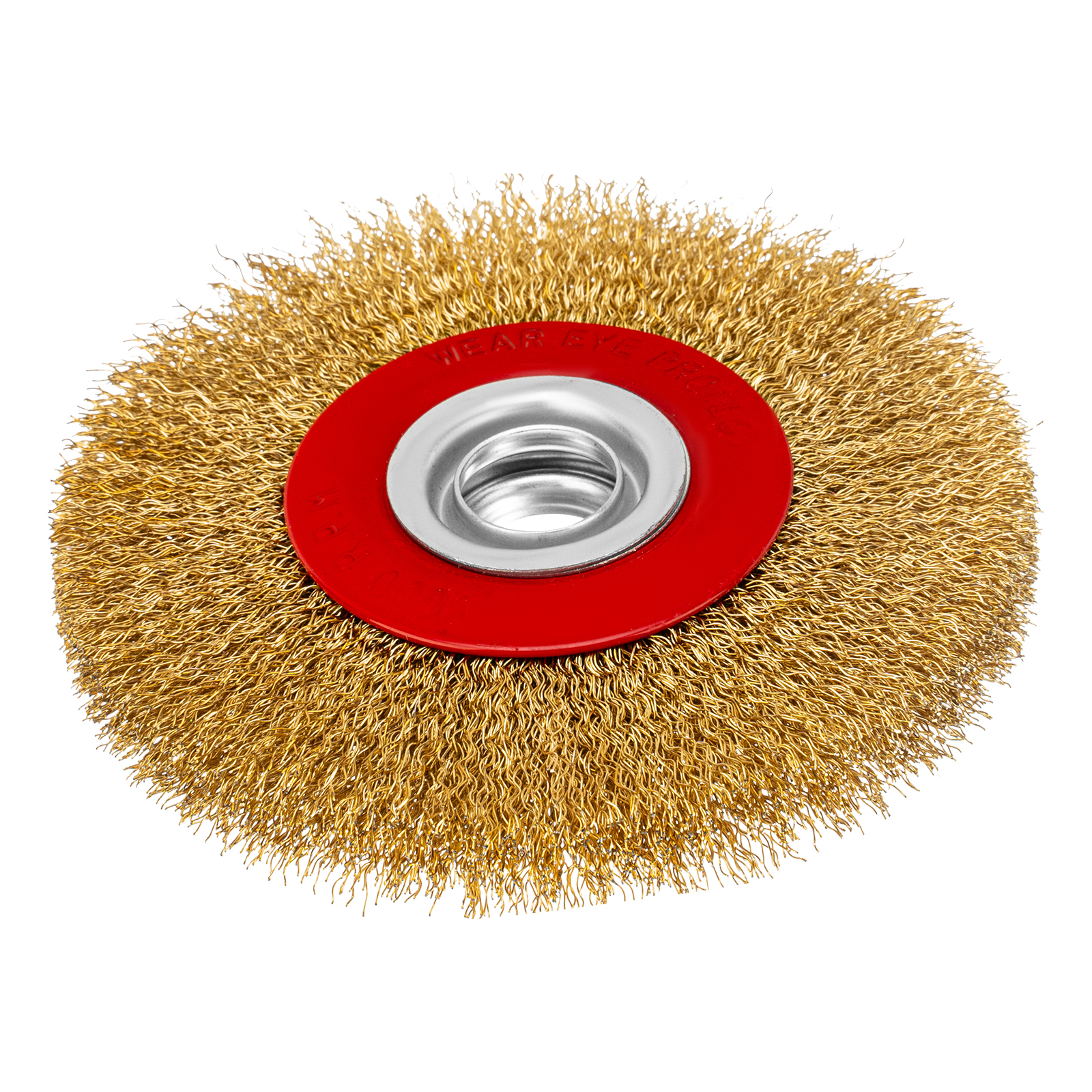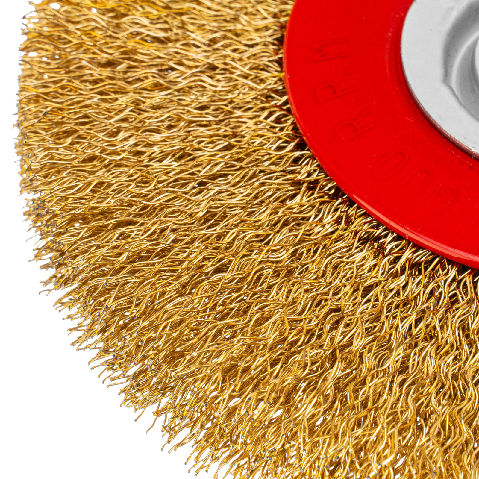 Плоская щетка Matrix 74659 диаметром 125 мм, с щетиной из латунированной витой проволоки, устанавливается на точило с посадочным размером 20 мм. Рекомендуемая скорость вращения — не более 6000 об/мин. Витая проволока позволяет в щадящем режиме зачистить тонкий слой ржавчины и лакокрасочных покрытий, удалить различные загрязнения с небольших или хрупких деталей. Благодаря плоской форме щетка подходит для обработки труднодоступных мест.