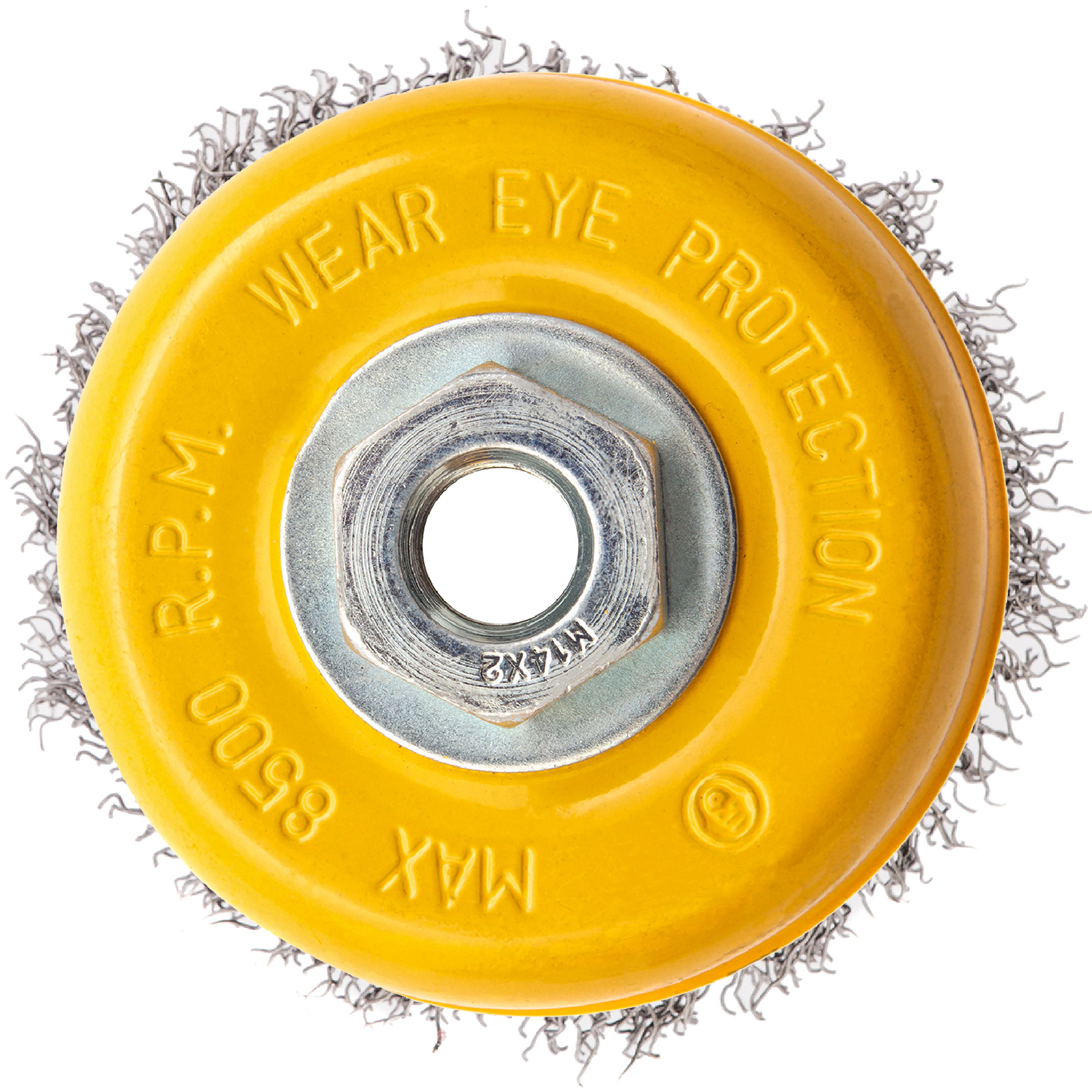 Щетка устанавливается на вал углошлифовальной машины (УШМ) и предназначена для работы с максимальной скоростью 8500 об/мин. Во время работы обязательно соблюдение техники безопасности и использование средств индивидуальной защиты.