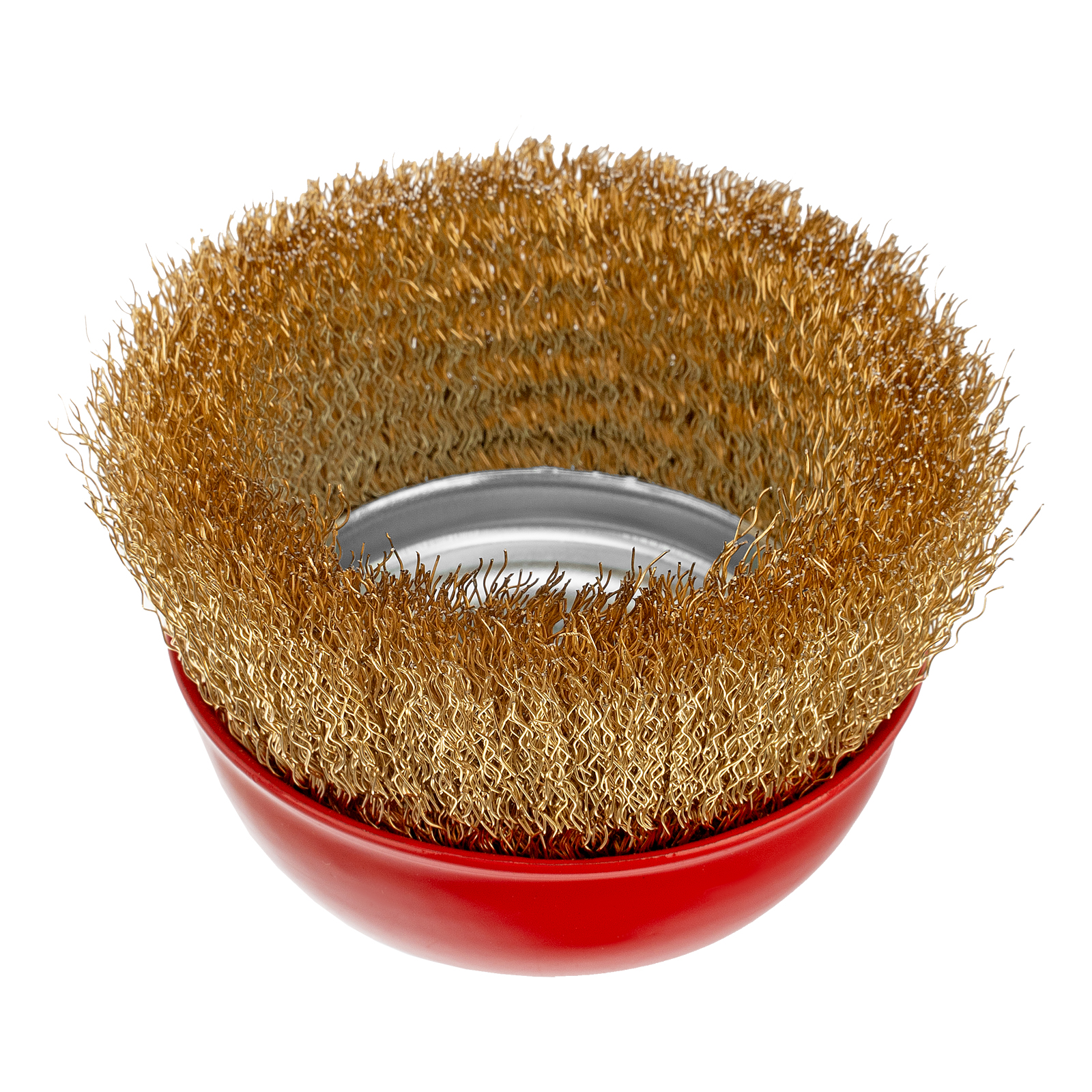 Щетка «чашка» Matrix 74605 диаметром 100 мм, с щетиной из латунированной витой проволоки, устанавливается на вал УШМ с помощью гайки М14. Предназначена для снятия тонкого слоя краски или лака, удаления ржавчины и загрязнений. При рекомендованной скорости вращения 8500 об/мин щеткой можно быстро обрабатывать участки большой площади.