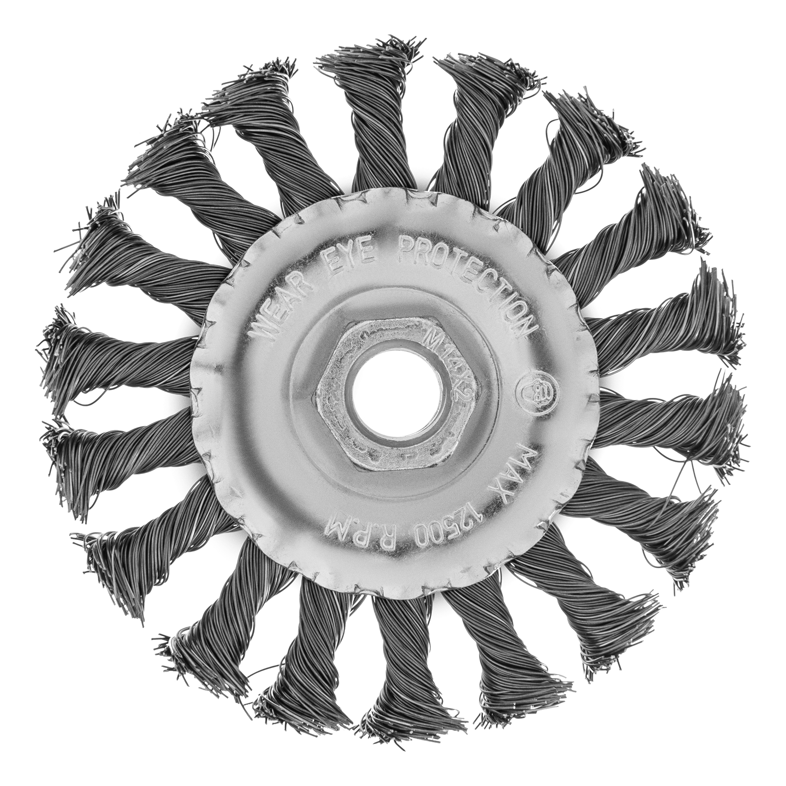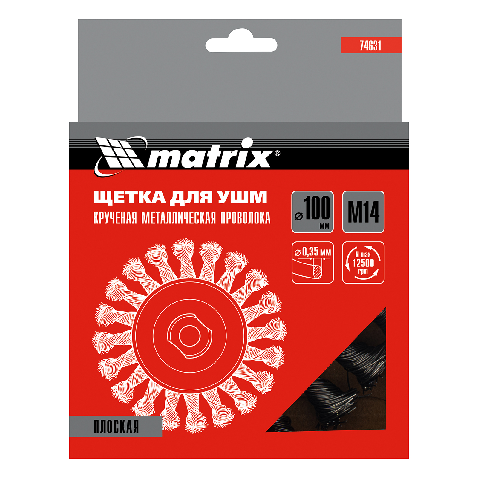 Плоская щетка Matrix 74631 диаметром 100 мм, с щетиной из крученой проволоки толщиной 0,35 мм и гайкой М14, — оснастка для УШМ, предназначенная для грубой (черновой) обработки поверхностей. Максимально допустимая скорость вращения шпинделя — 12500 об/мин. Щетка позволяет снять толстый слой ржавчины, лакокрасочных покрытий, загрязнений, а также зачистить сварные швы. Плоская форма удобна для обработки углов, изгибов и других труднодоступных мест.