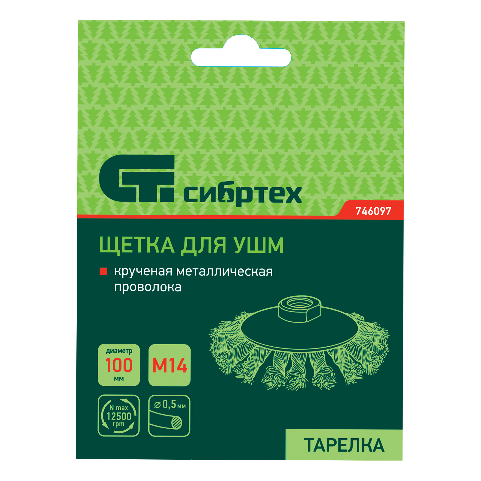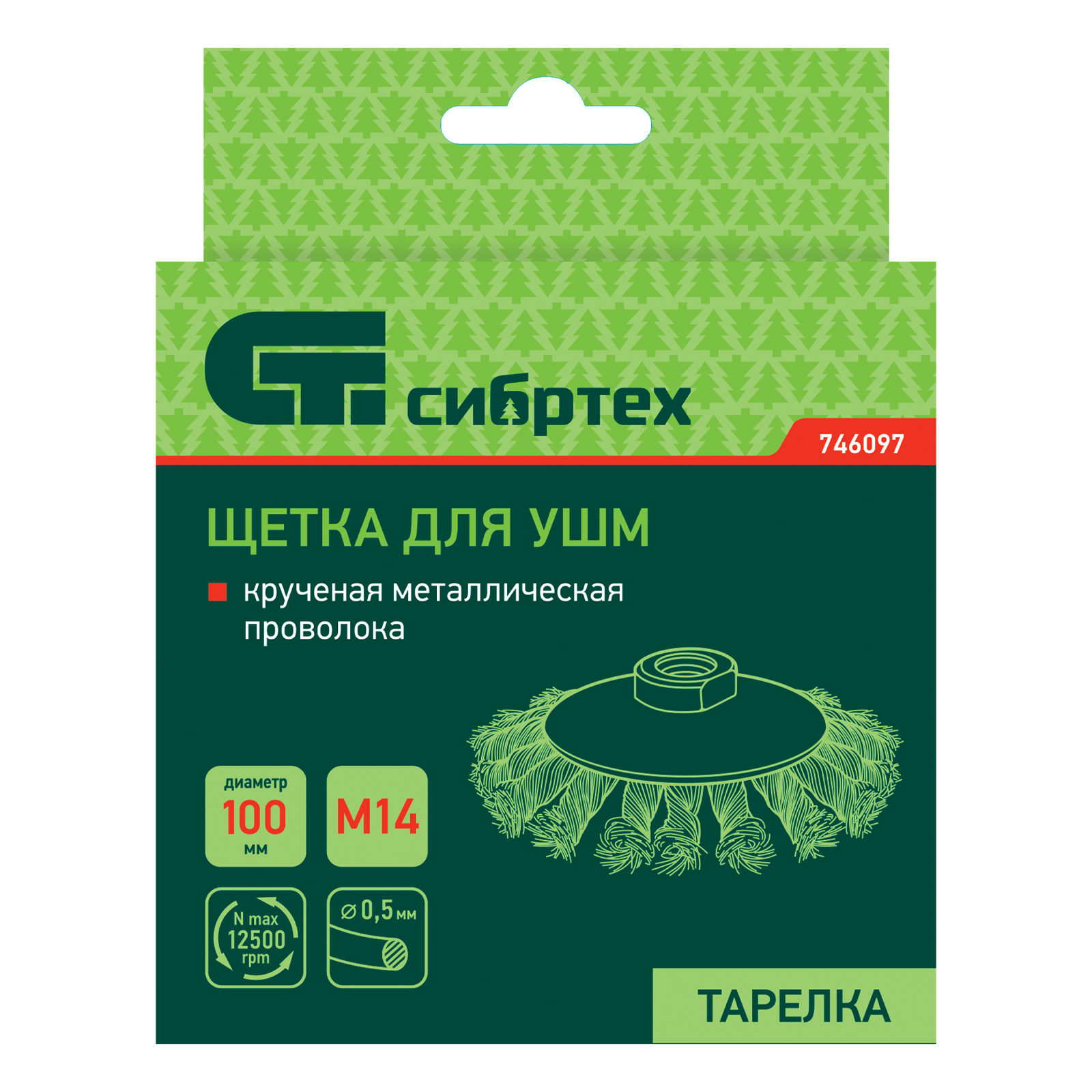 <p>Щетка Сибртех «тарелка» 746097 диаметром 100 мм, с щетиной из крученой проволоки толщиной 0,5 мм, устанавливается на УШМ при помощи гайки М14. Выполнена в форме тарелки, за счет чего подходит для грубой (черновой) обработки плоских и угловых поверхностей. Удаляет ржавчину, загрязнения, лакокрасочные покрытия, подходит для зачистки сварных швов. Использование на скорости до 12500 об/мин позволяет продлить срок службы насадки.</p><h2>Преимущества</h2><ul><li>Износостойкость — щетина изготовлена из высококачественной стальной проволоки.</li><li>Универсальность — насадкой можно обрабатывать различные твердые материалы: металл, древесину, пластик, бетон.</li><li>Антикоррозийная защита — на корпус нанесено эмалевое покрытие, щетина покрыта техническим маслом.</li></ul>