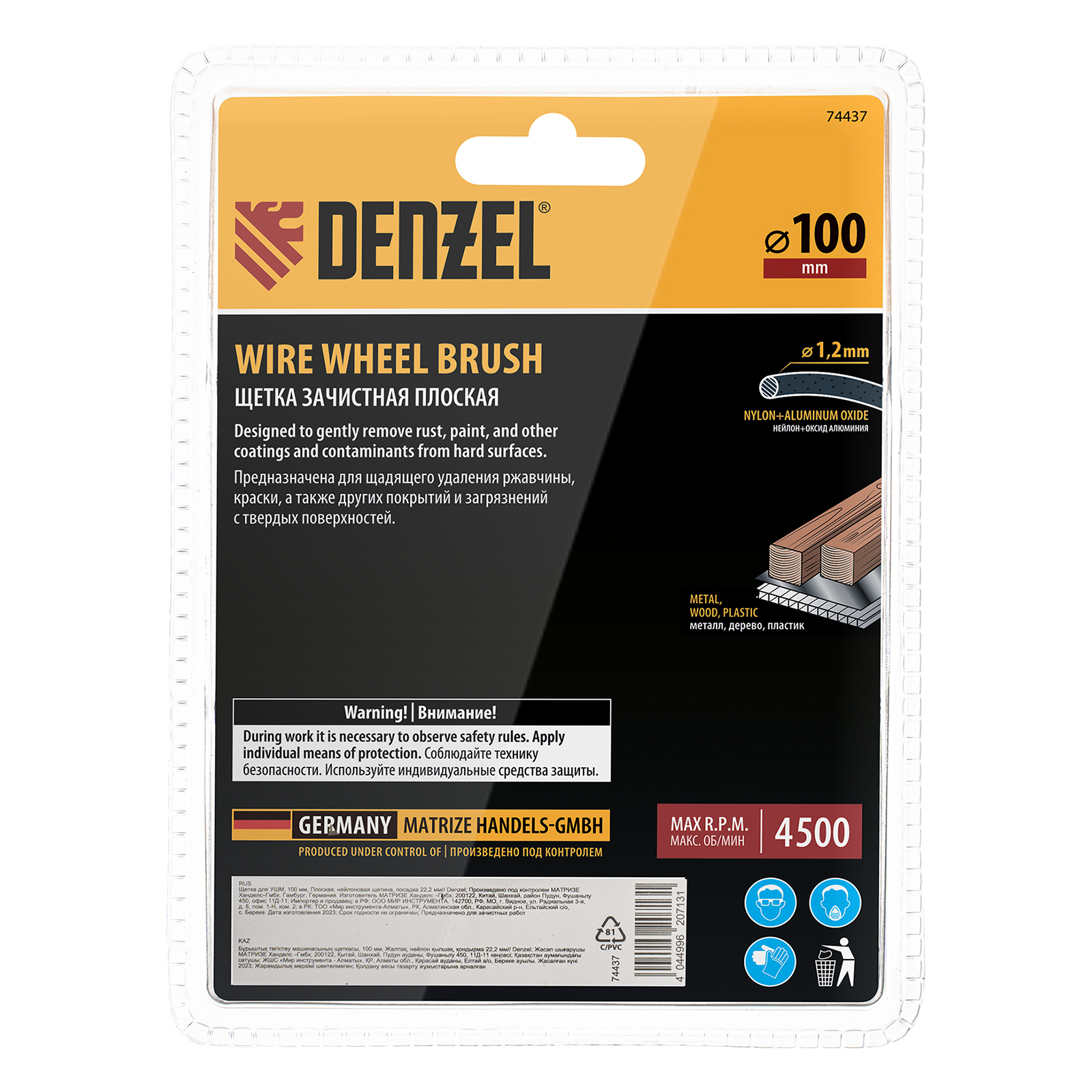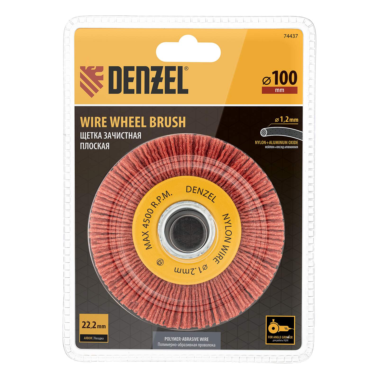 <p>Плоская щетка Denzel 74437 диаметром 100 мм, с нейлоновой щетиной, с посадкой 22,2 мм, устанавливается на фланец УШМ. Предназначена для выполнения шлифовальных работ. Щетина изготовлена из высококачественного нейлона с нанесенным абразивом из оксида алюминия. удаления загрязнений, краски, пятен ржавчины с твердых поверхностей. Позволяет придать шероховатость поверхности, подходит для браширования древесины. Благодаря плоской форме насадка удобна для обработки пазов, изгибов, угловых соединений.</p><h2>Преимущества</h2><ul><li>Высокое качество обработки — в отличие от металлической, нейлоновая щетина не оставляет следов на деревянных поверхностях.</li><li>Долговечность — щетина из полимерного материала не подвержена коррозии.</li><li>Удобная упаковка — двойной блистер позволяет осмотреть насадку перед покупкой.</li></ul>