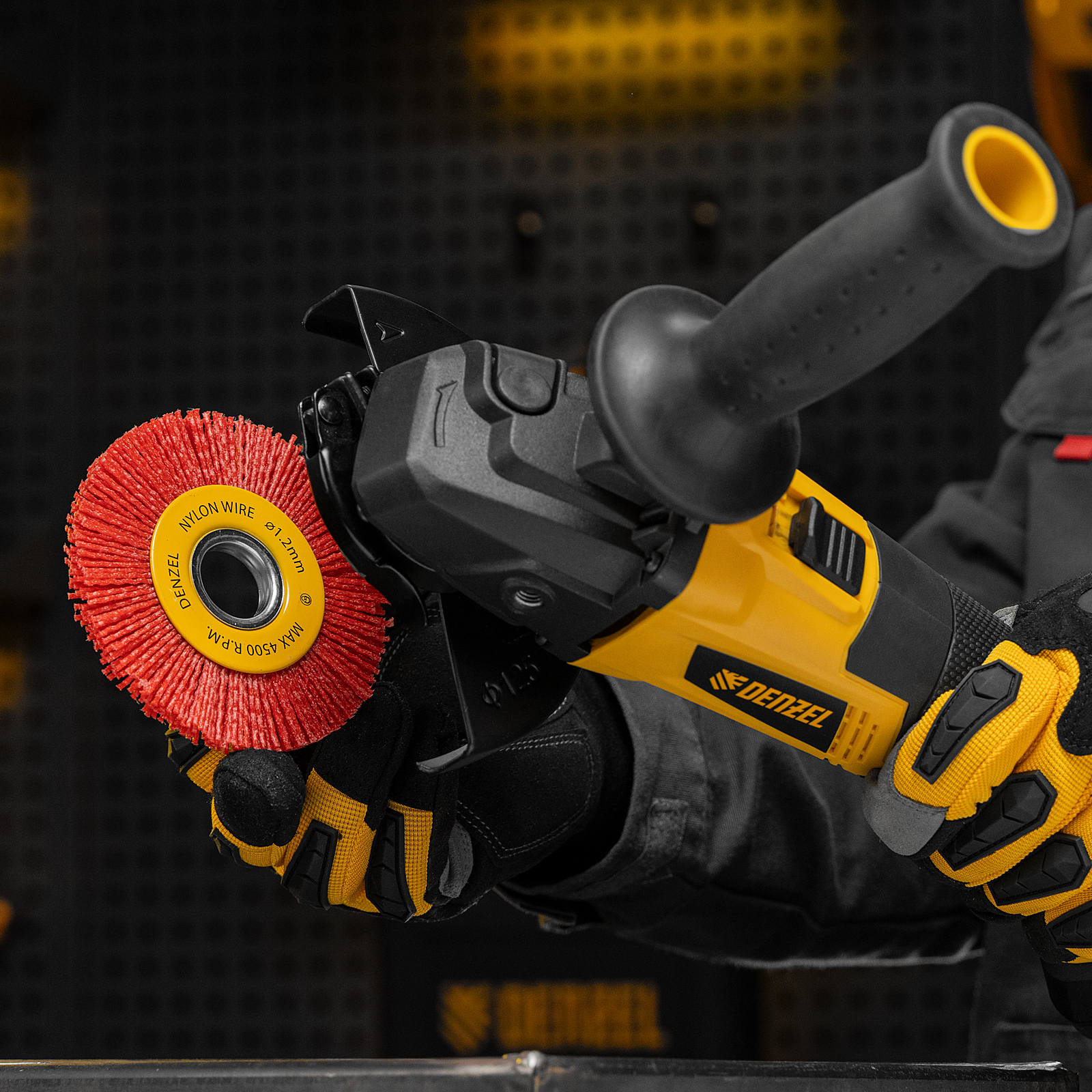 Плоская щетка Denzel 74437 диаметром 100 мм, с нейлоновой щетиной, с посадкой 22,2 мм, устанавливается на фланец УШМ. Предназначена для выполнения шлифовальных работ. Щетина изготовлена из высококачественного нейлона с нанесенным абразивом из оксида алюминия. удаления загрязнений, краски, пятен ржавчины с твердых поверхностей. Позволяет придать шероховатость поверхности, подходит для браширования древесины. Благодаря плоской форме насадка удобна для обработки пазов, изгибов, угловых соединений.