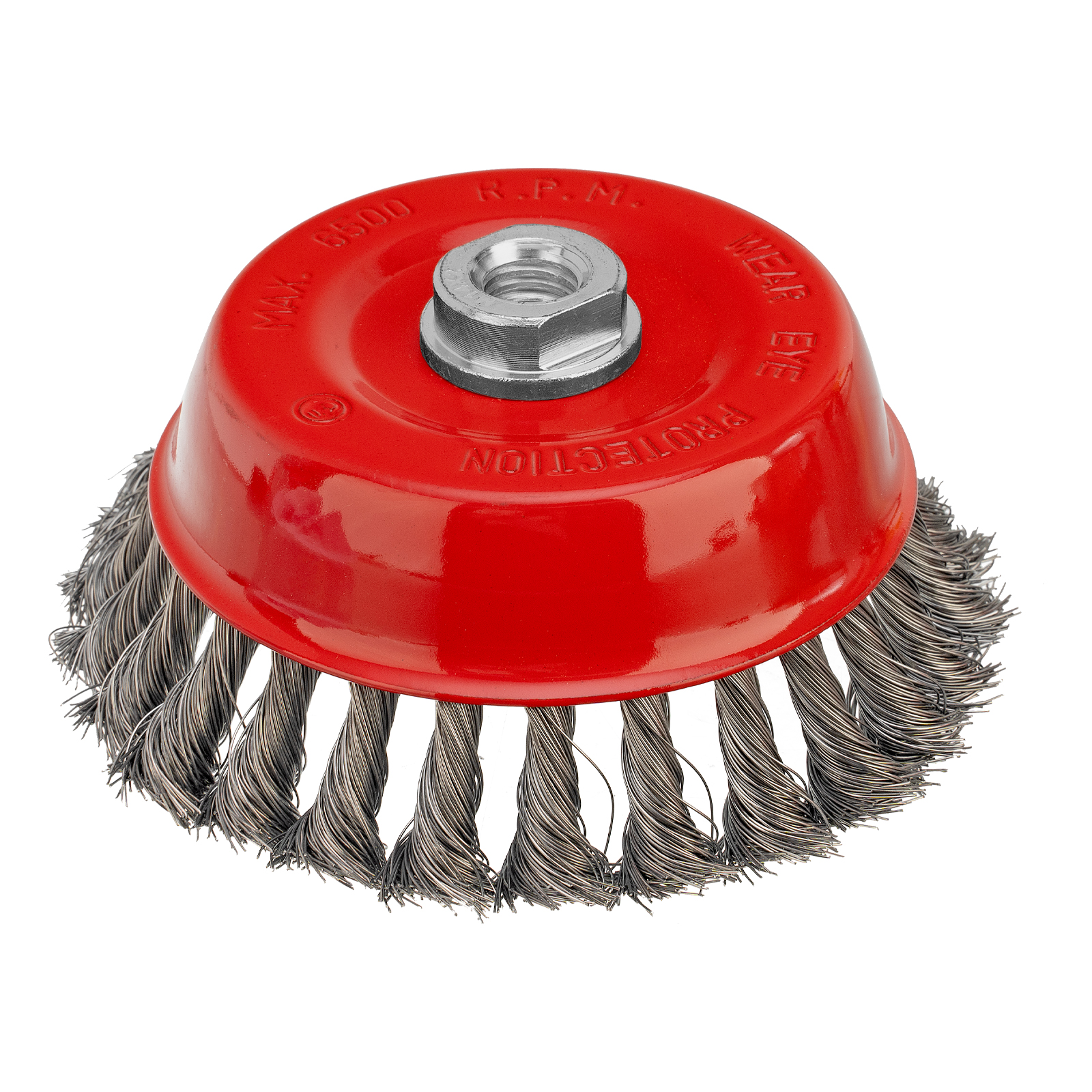 Щетка Matrix «Чашка» 74617 диаметром 125 мм, с присоединительной резьбой М14, с щетиной из крученой проволоки диаметром 0,35 мм, устанавливается на УШМ, поддерживающую работу со скоростью 6500 об/мин. Щетина предназначена для грубой (черновой) обработки поверхностей, менее агрессивной по сравнению с щетиной 0,5 мм. Изделие подходит для удаления загрязнений, снятия толстого слоя ржавчины, ЛКМ, зачистки сварных швов.
