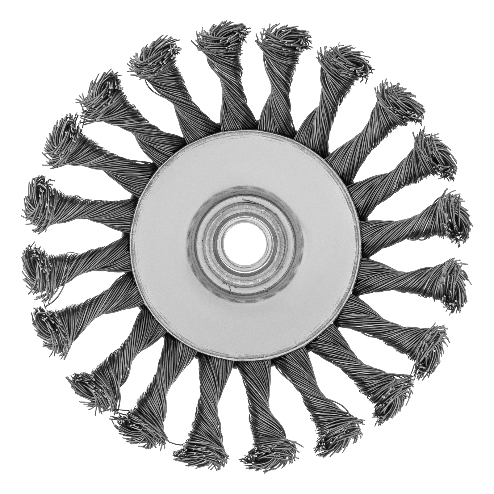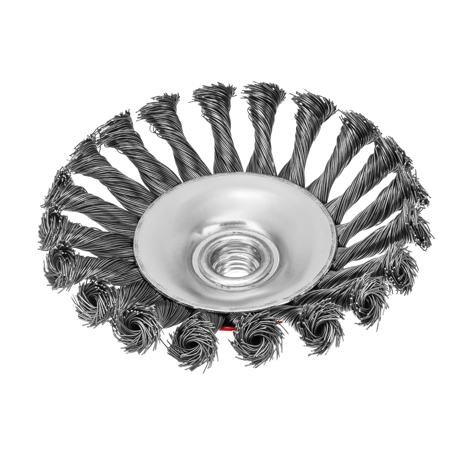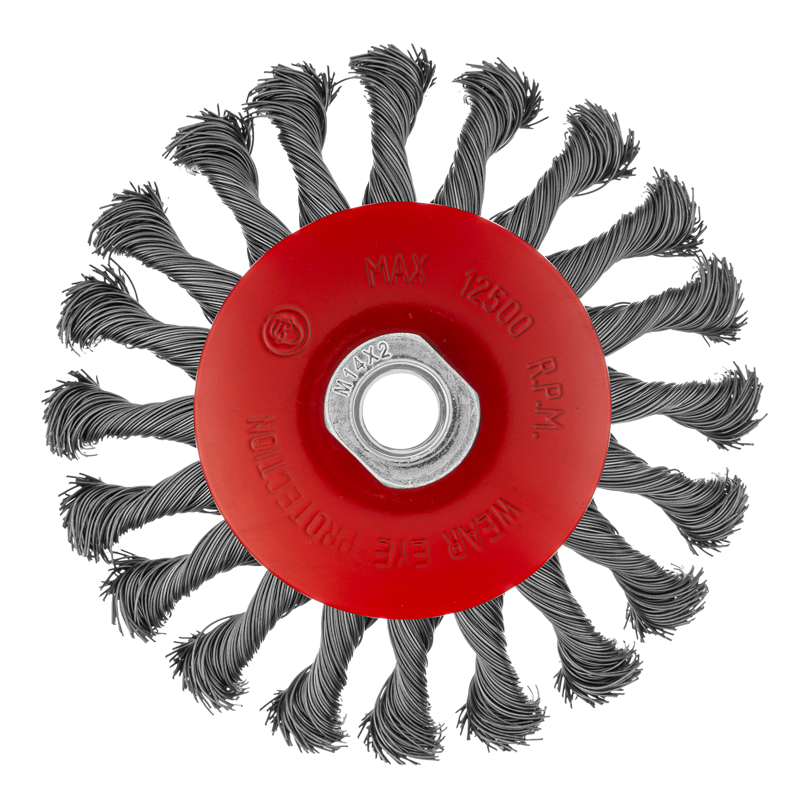 Щетка Matrix «тарелка» 74611 диаметром 125 мм, с щетиной из крученой проволоки толщиной 0,5 мм, устанавливается на УШМ при помощи гайки М14. Выполнена в форме тарелки, за счет чего подходит для грубой (черновой) обработки плоских и угловых поверхностей. Удаляет ржавчину, загрязнения, лакокрасочные покрытия, подходит для зачистки сварных швов. Использование на скорости до 12500 об/мин позволяет продлить срок службы насадки.