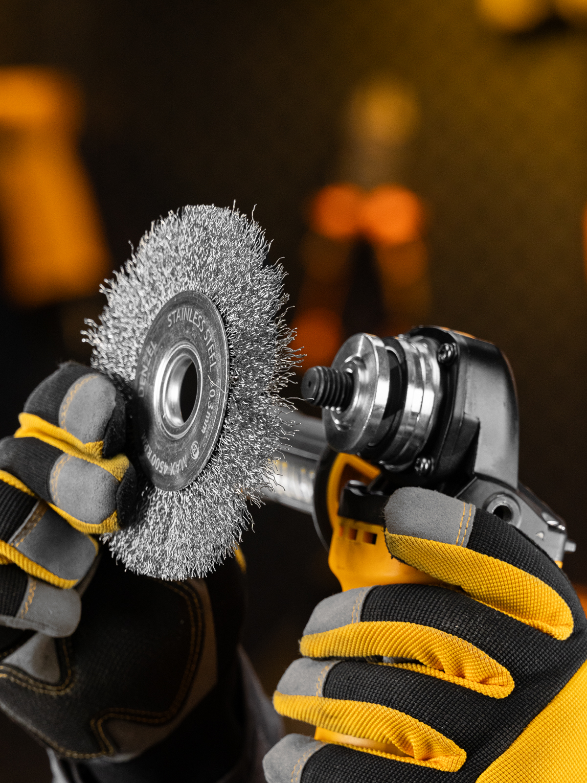 Плоская щетка для УШМ Denzel 746563 диаметром 125 мм, с щетиной из витой нержавеющей проволоки 0,3 мм, с посадкой 22,2 мм, постепенно снимает тонкий слой материала, поэтому ее используют для щадящей обработки металлических, деревянных, пластиковых поверхностей, а также изделий из нержавеющей стали. Щетка удаляет ржавчину, загрязнения, остатки лакокрасочных покрытий из труднодоступных мест, пазов и углов. Оснастка с посадкой 22,2 мм устанавливается на фланец углошлифовальной машины, что удобно для длительной работы без смены насадок. Рекомендуемая максимальная скорость вращения составляет 4500 об/мин. Во время работы следует использовать средства индивидуальной защиты. Щетку применяют в строительстве, машиностроении, а также в быту.