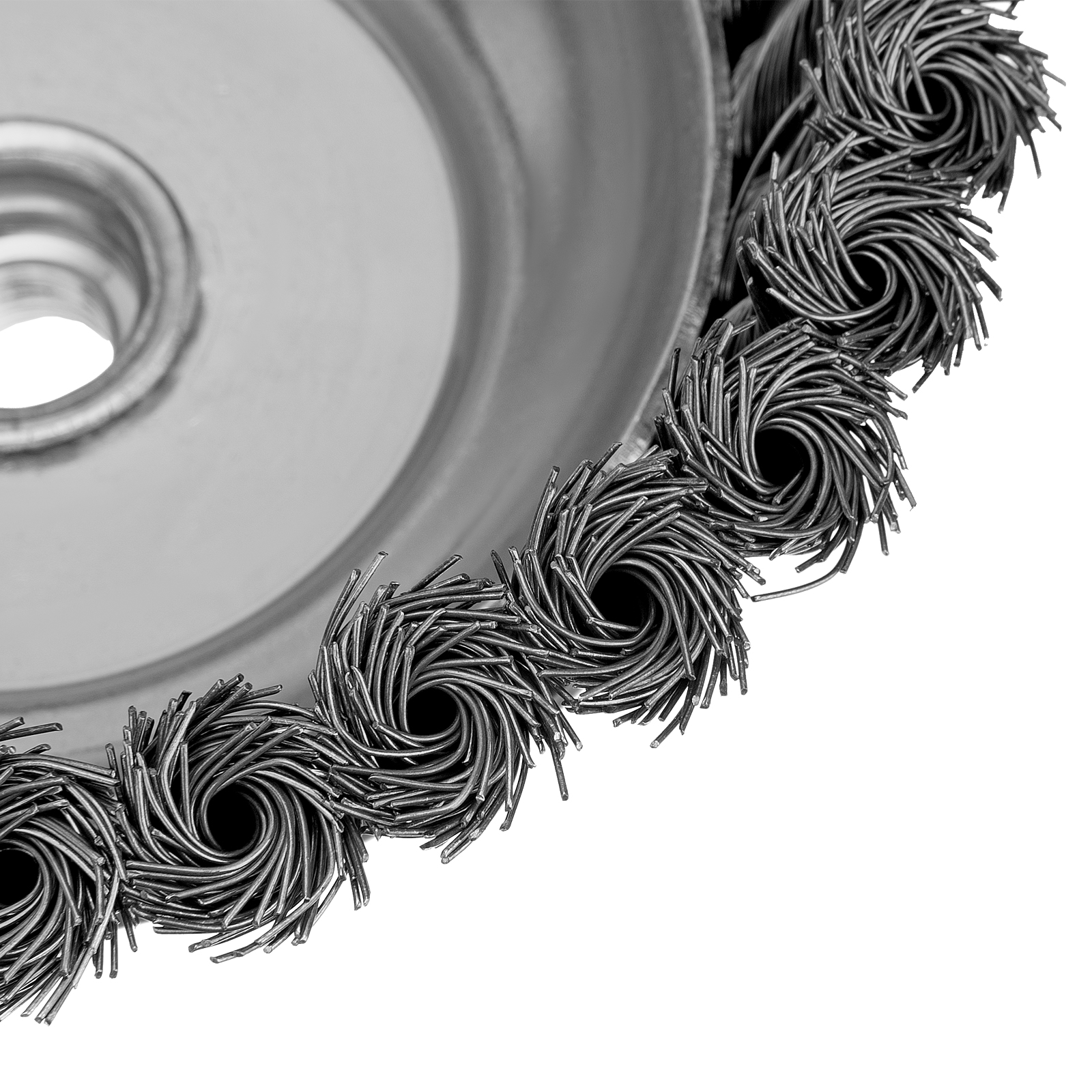 Прочность и долговечность — щетина из крученой стальной проволоки выдерживает значительные нагрузки.