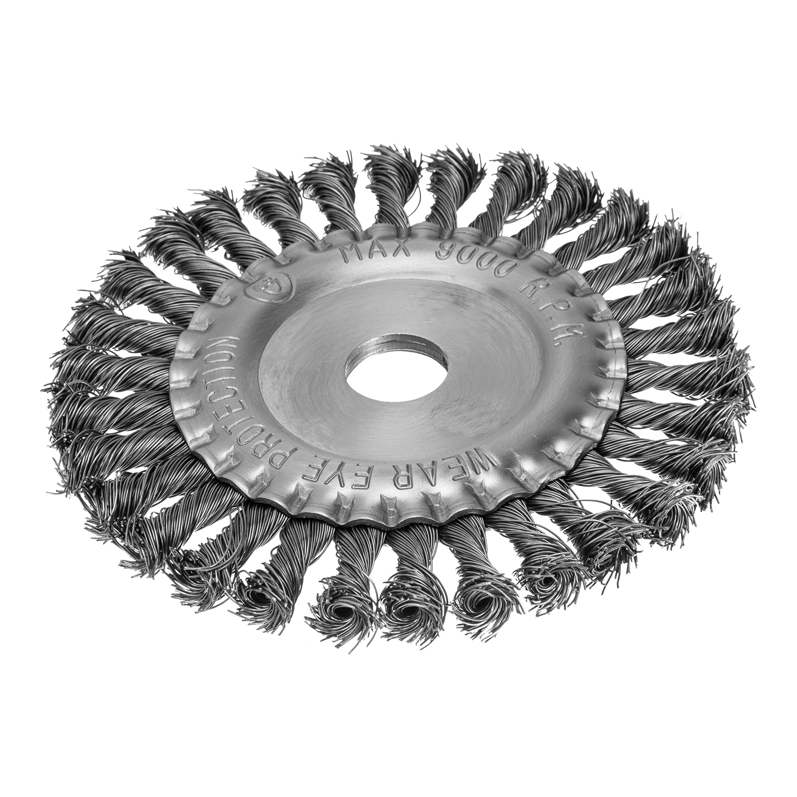 Плоская щетка Сибртех 746347 диаметром 150 мм и посадкой 22,2 мм, с щетиной из крученой проволоки толщиной 0,5 мм, устанавливается на вал УШМ, поддерживающей скорость вращения не более 9000 об/мин. Эффективно удаляет загрязнения, толстый слой ржавчины и лакокрасочных материалов с поверхностей, поэтому используется для проведения грубой (черновой) обработки. Плоской щеткой удобно очищать труднодоступные места, в том числе углы и изгибы.