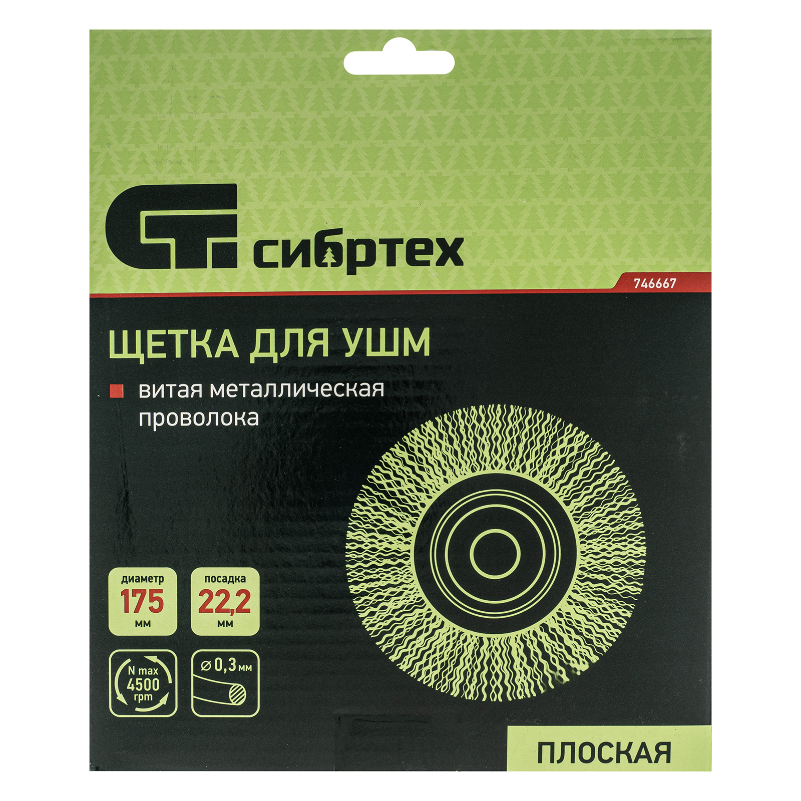 Плоская щетка для УШМ Сибртех 746667 диаметром 175 мм, с посадкой 22,2 мм, с щетиной из витой проволоки, предназначена для щадящей очистки твердых поверхностей от загрязнений, ржавчины, остатков краски и других покрытий. Щетина из проволоки толщиной 0,3 мм постепенно снимает тонкий слой материала. Плоская форма щетки делает ее оптимальным инструментом для обработки внутренних углов, пазов, изгибов и малодоступных мест. Щетка позволяет придать шероховатость или подчеркнуть структуру материала. Насадка устанавливается на фланец углошлифовальной машины и подходит для продолжительной работы, не требующей частой смены оснасток. Рекомендуемая максимальная скорость вращения составляет 4500 об/мин. Для обеспечения безопасности оператора следует использовать средства индивидуальной защиты. Щетка применяется в строительной, производственной сфере, а также в быту.